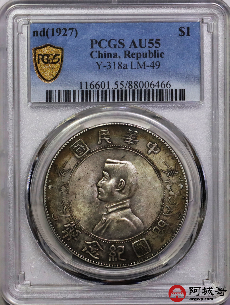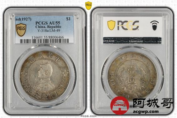 Lot:12 原味 黄油转光 孙像小头壹圆 PCGS AU55