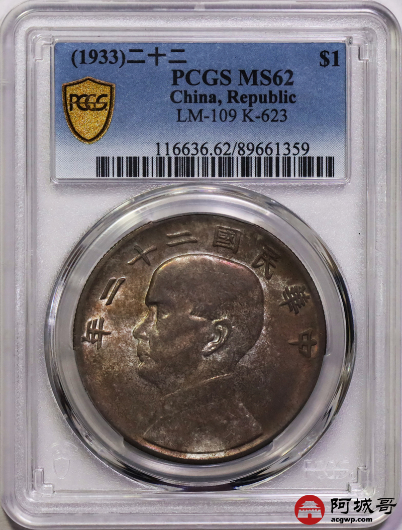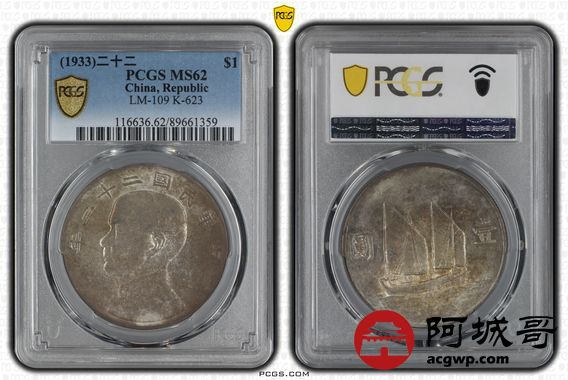 Lot:6 原光 五彩底板 二十二年船洋 PCGS MS62