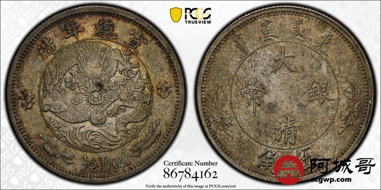 Lot:18 深打原味五彩 大清水龙伍角 PCGS AU