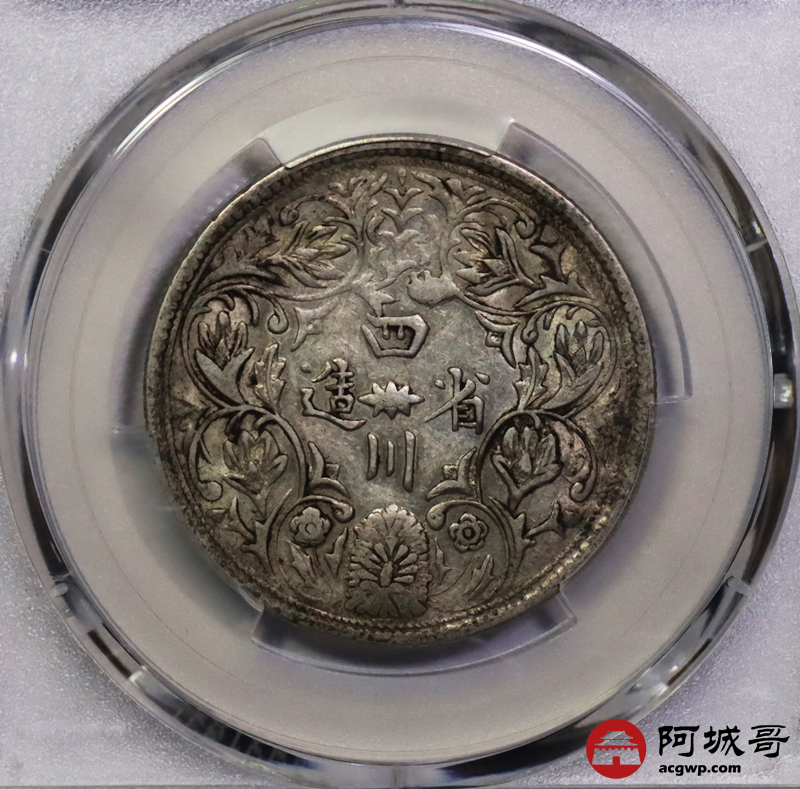 Lot:23 原味老包浆 四川一期卢币无领横花 PCGS XF45