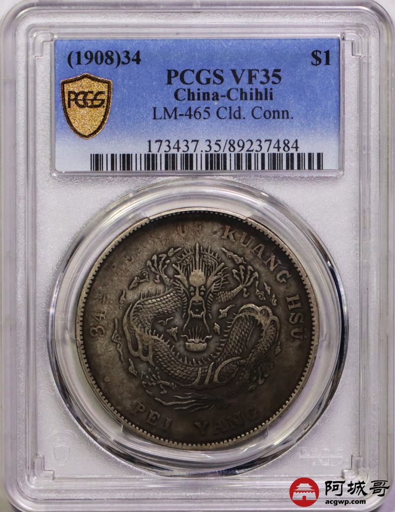 Lot:17 原味老包浆 北洋34七钱二分 PCGS VF35