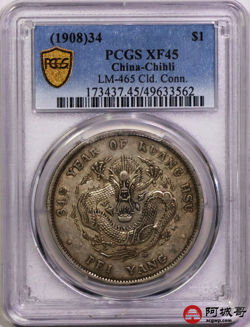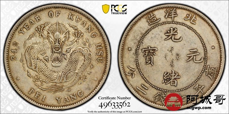 Lot:15 原味老包浆 北洋34七钱二分 PCGS XF45