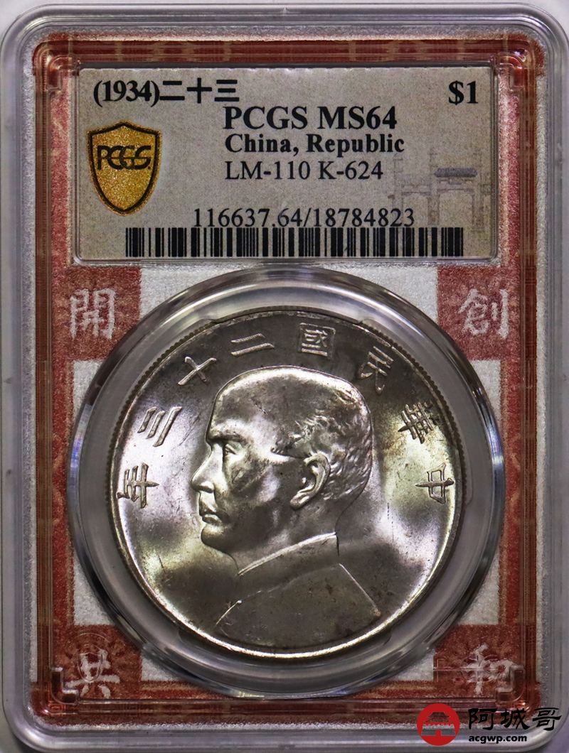 Lot:1 车轮转光 二十三年船洋 PCGS MS64