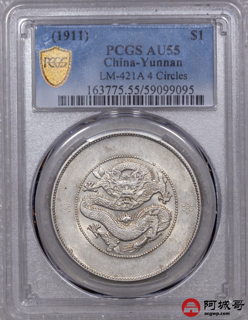 Lot:21 原味底光 云南大困龙七钱二分 PCGS AU55