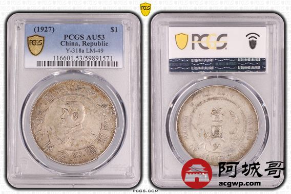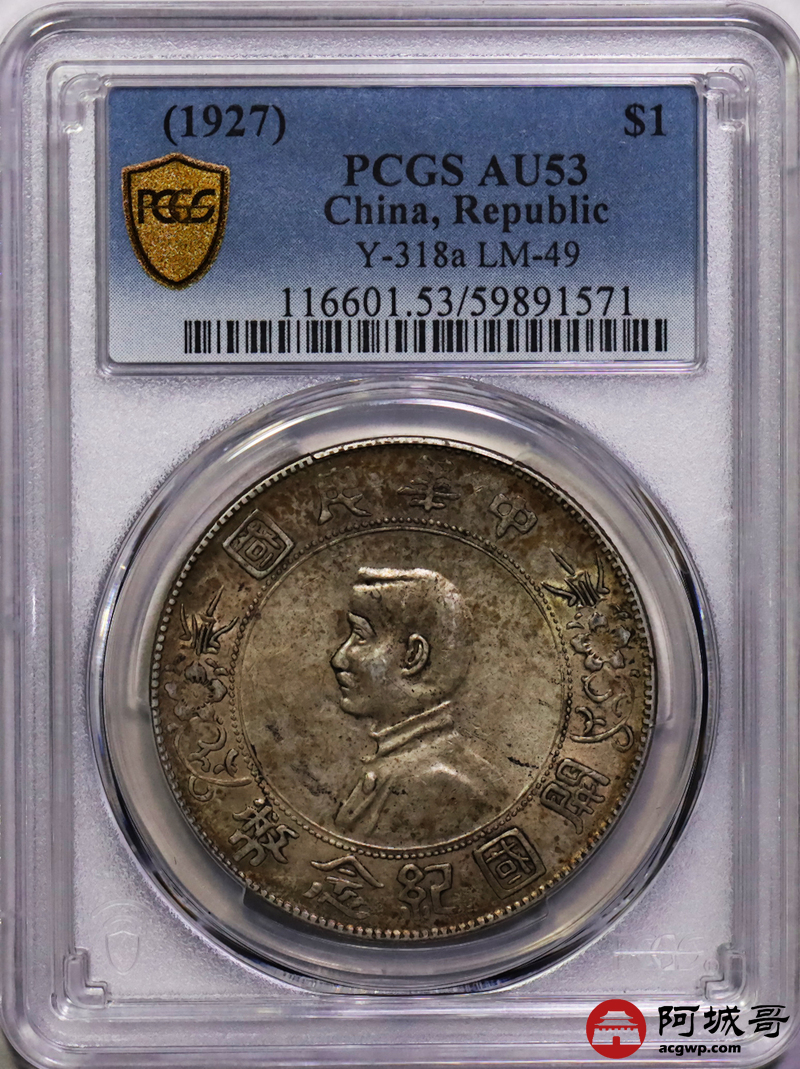 Lot:27 黄油彩 孙像小头壹圆 PCGS AU53
