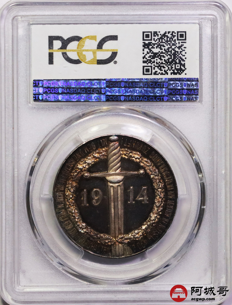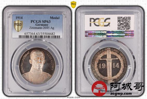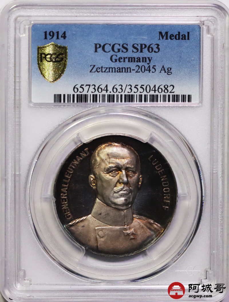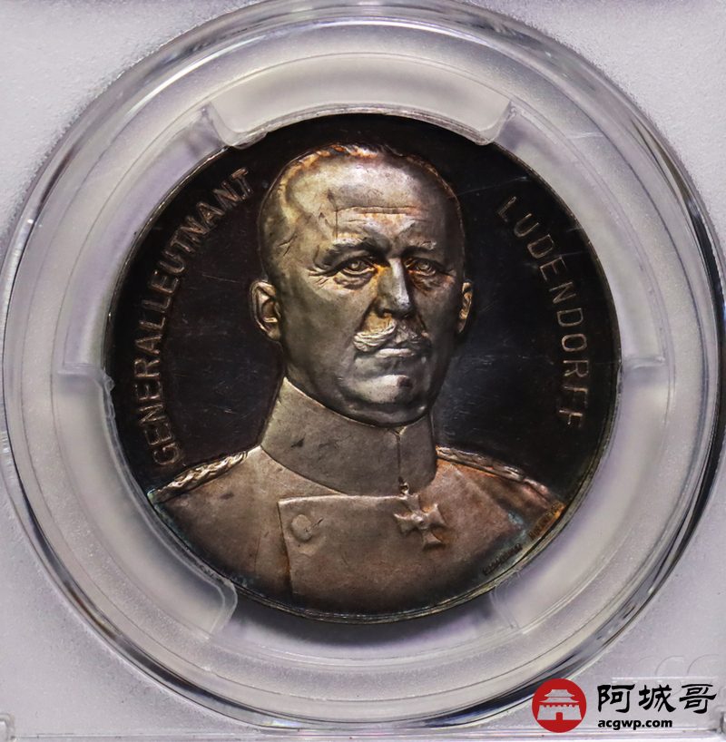 Lot:21 1914年德国一战上将鲁登道夫五彩银章 PCGS SP63