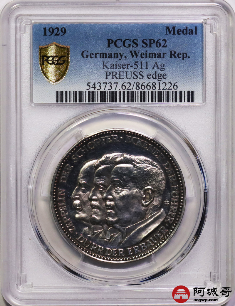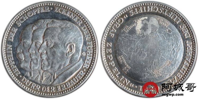 Lot:13 1929年德国魏玛环球飞行纪念银章 PCGS SP62