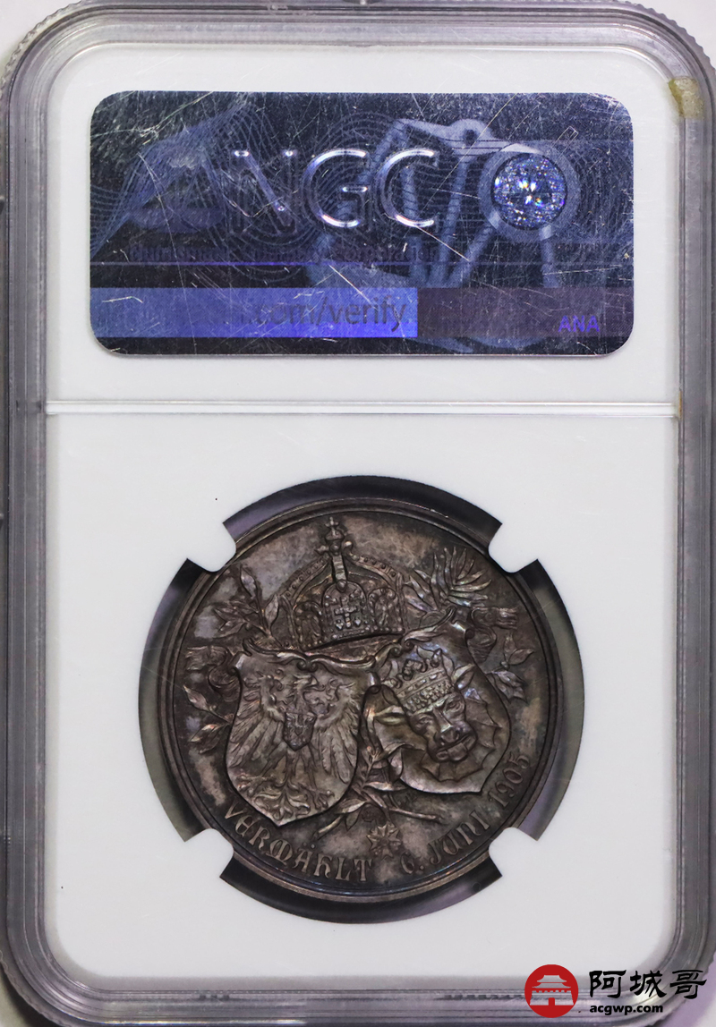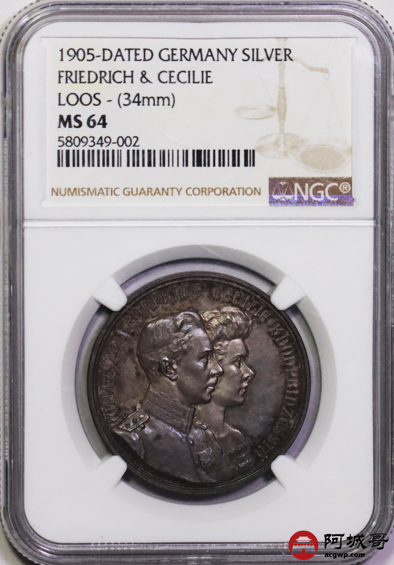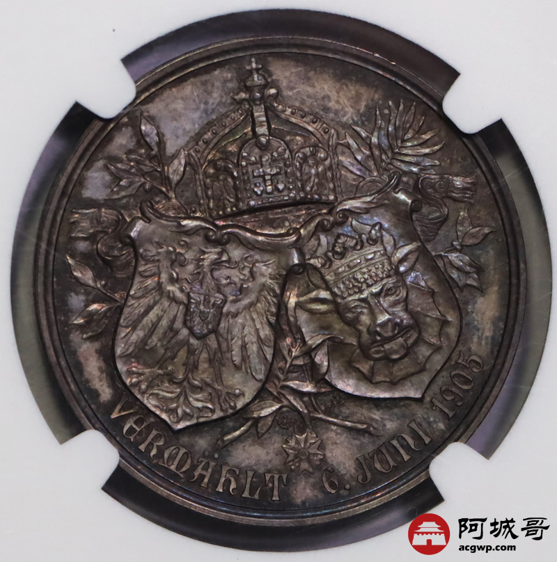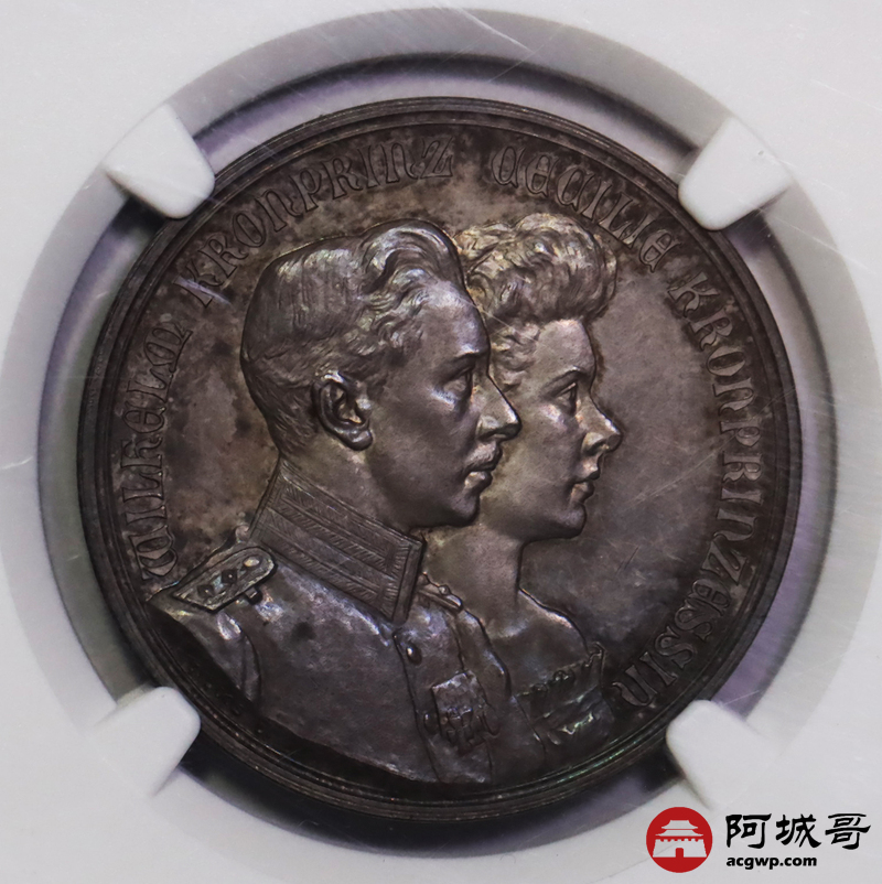 Lot:22 1905年德意志帝国腓特烈·威廉王储与塞西莉娅王妃婚礼银章 NGC MS64