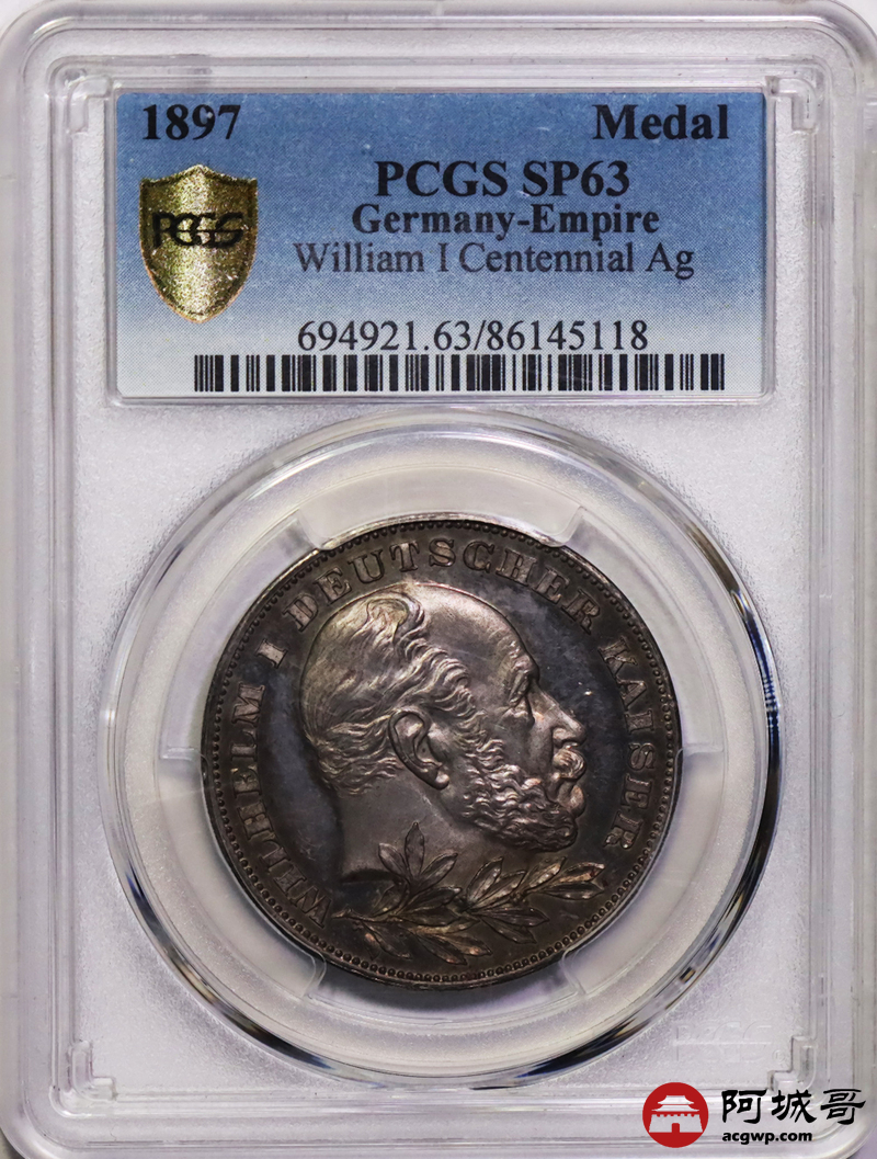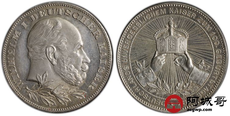Lot:12 1897年德国威廉一世百年诞辰纪念银章 PCGS SP63