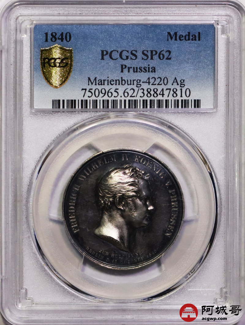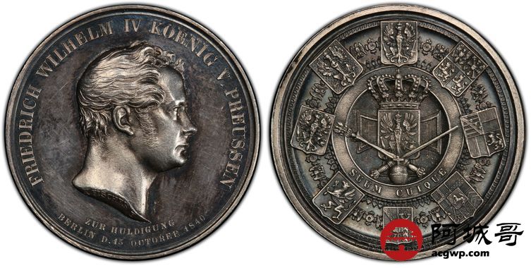 Lot:16 1840年普鲁士腓特烈·威廉四世加冕银章PCGS SP62