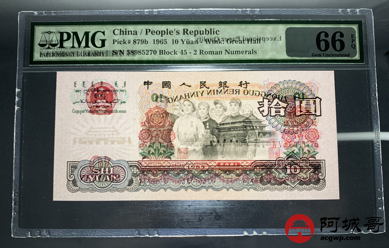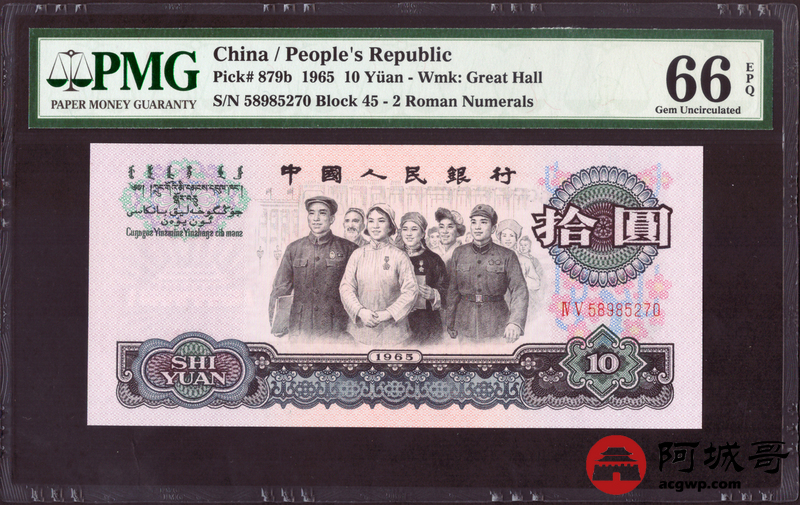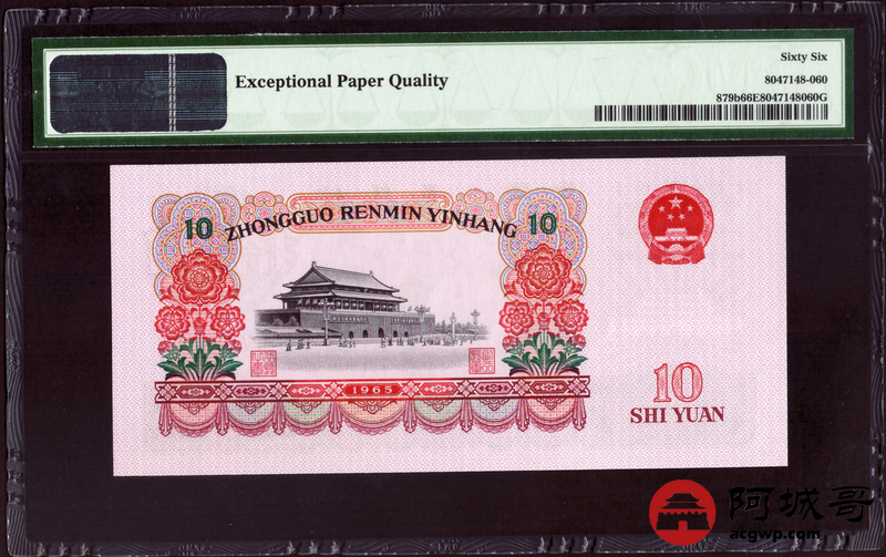 Lot:17 三版 1965年 中国人民银行 拾圆大团结 PMG 66EPQ