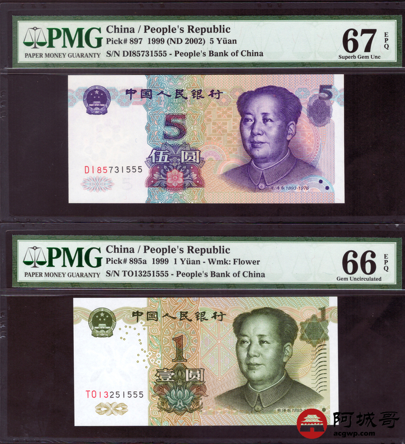 Lot:37 人民币小全套 PMG 66EPQ 、PMG 67EPQ 尾4同1555