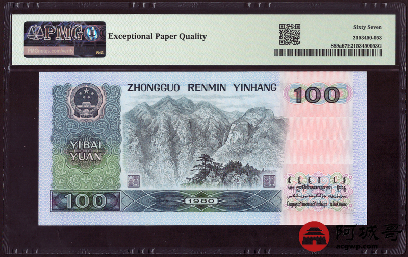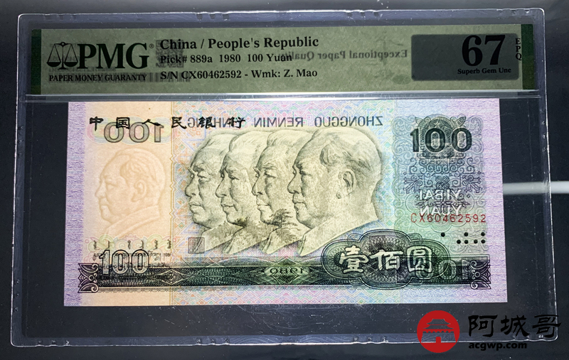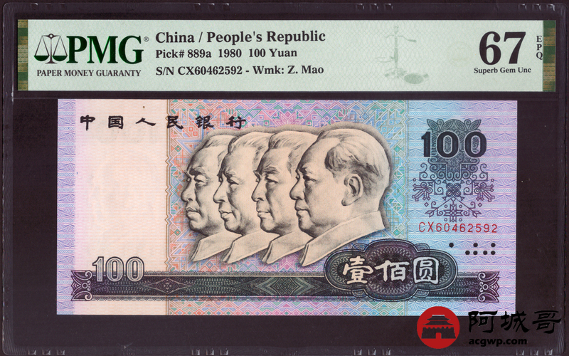 Lot:38 四版 1980年 中国人民银行 壹佰圆 PMG 67EPQ
