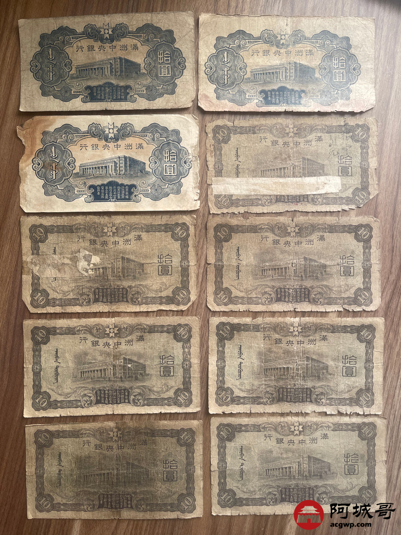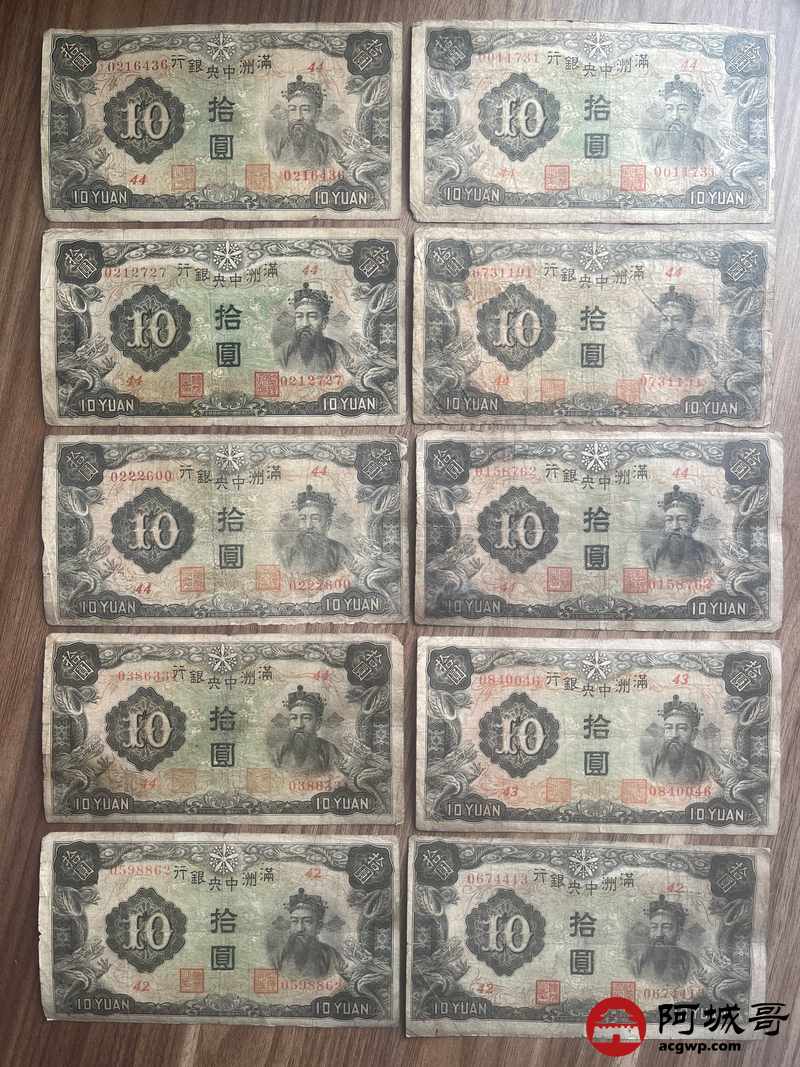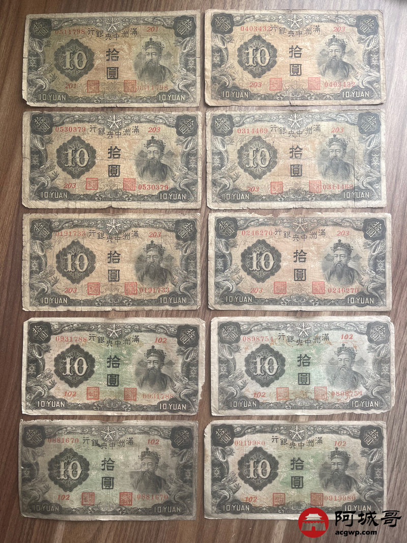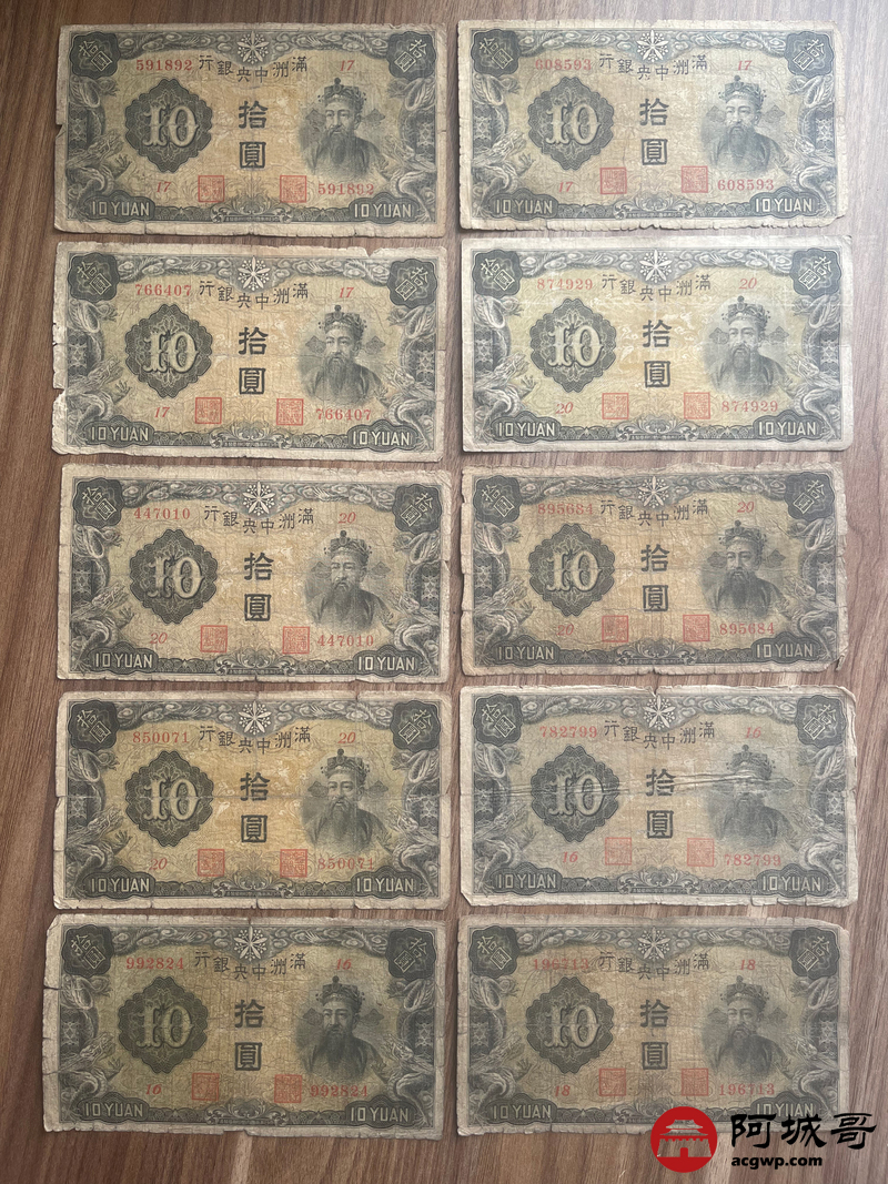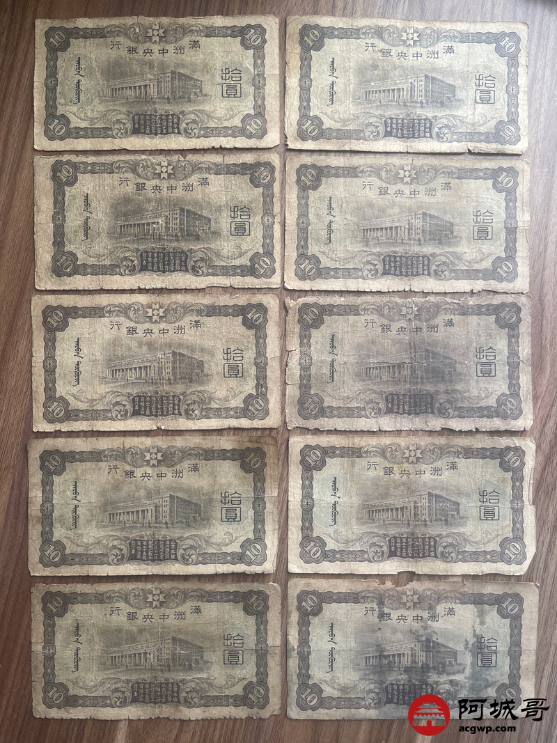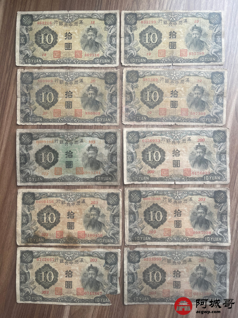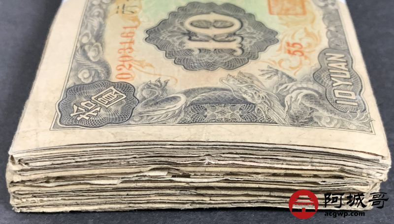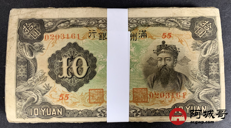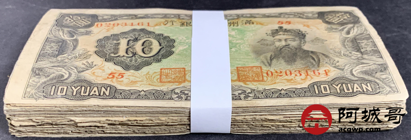 Lot:23 大同元年满洲中央银行 财神拾圆 100张 65至69成新 有几张修补