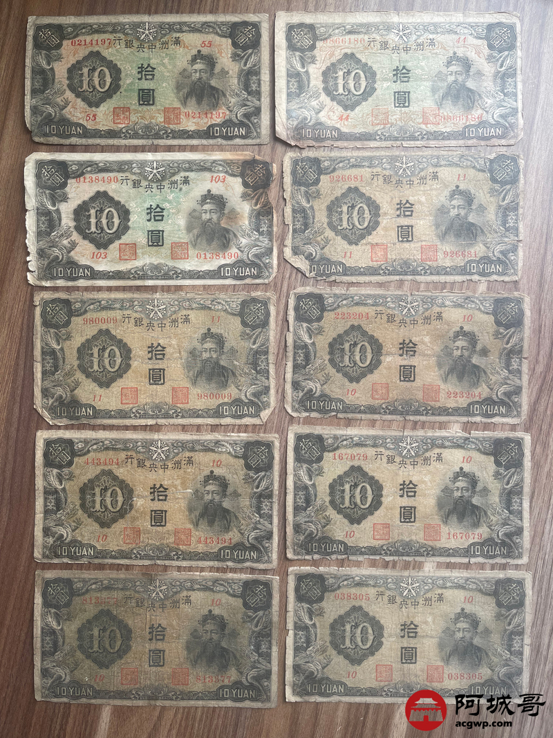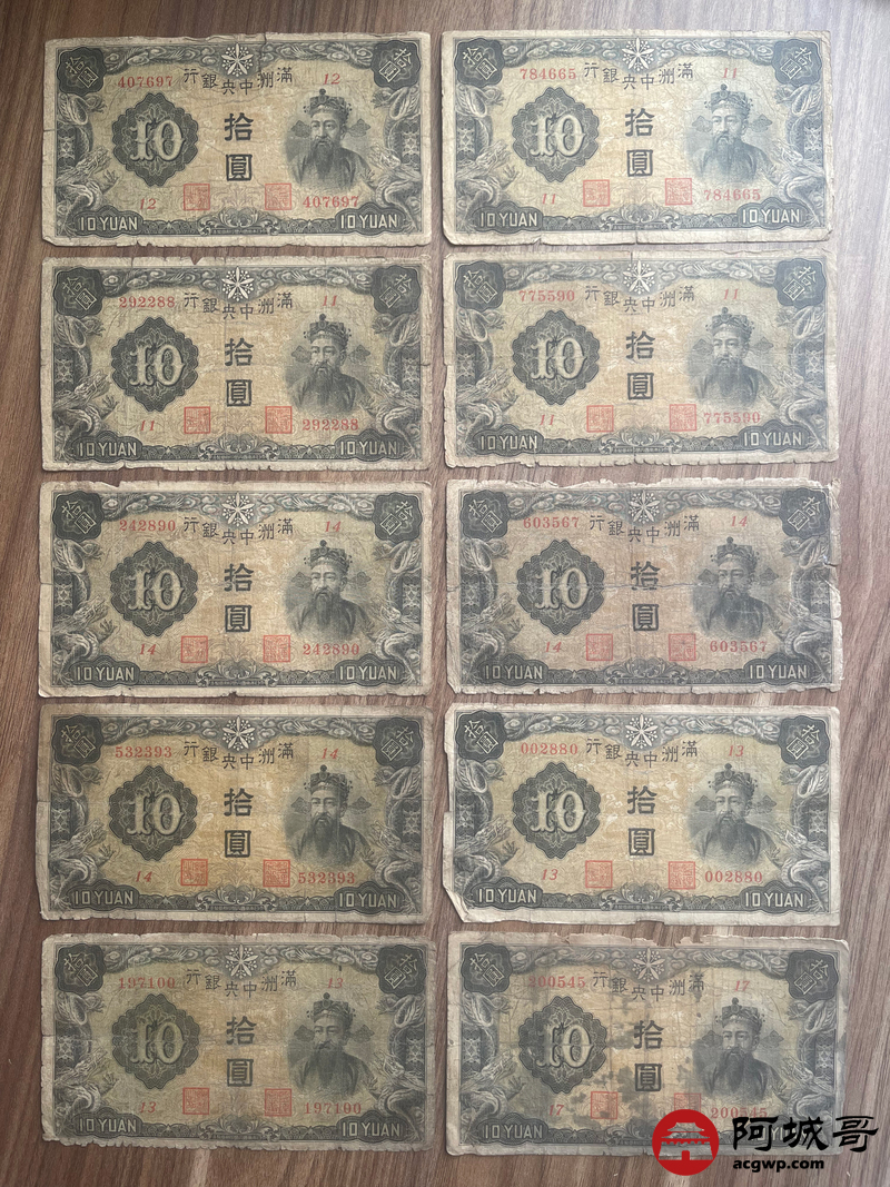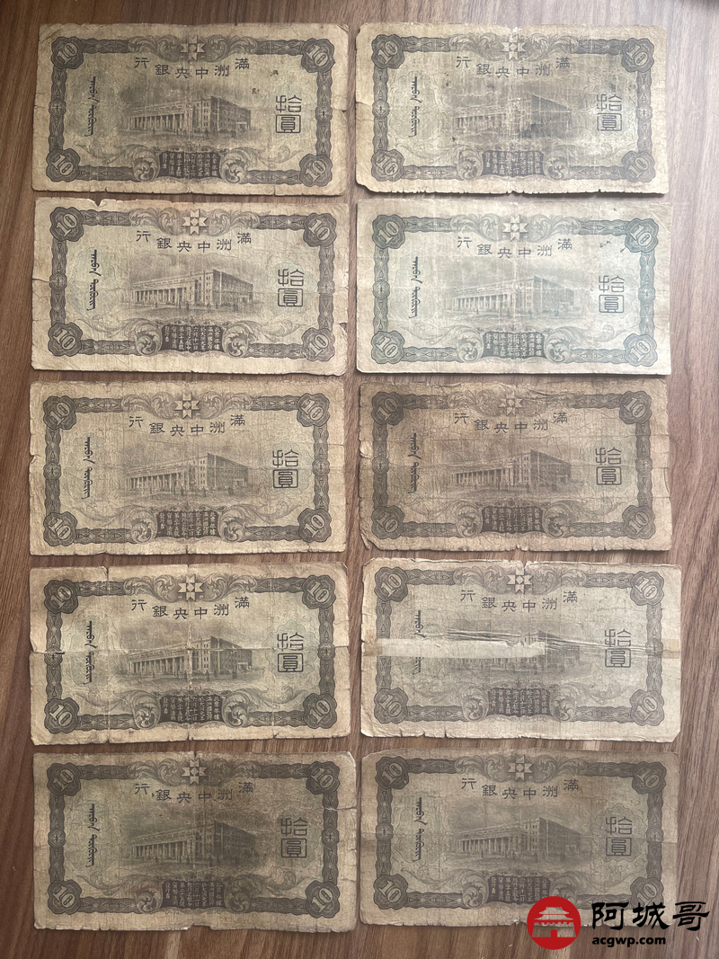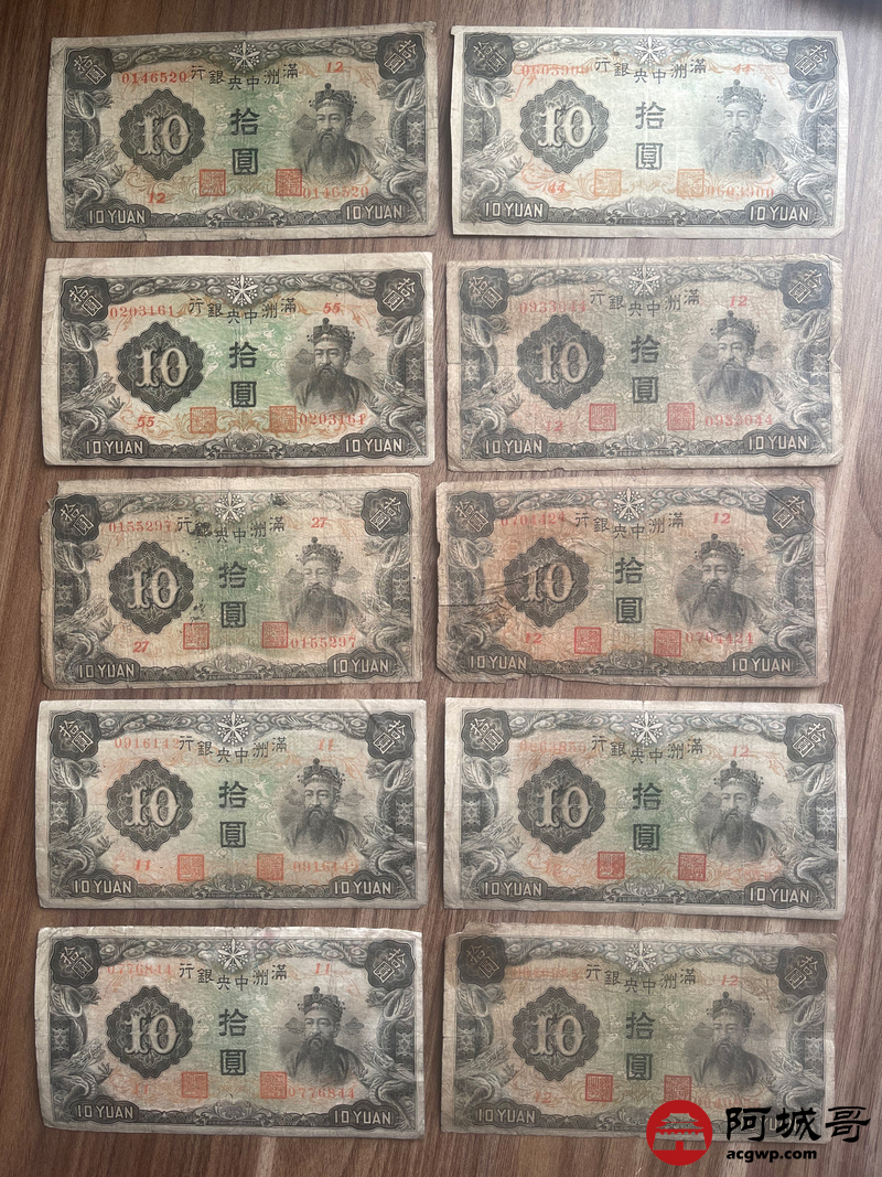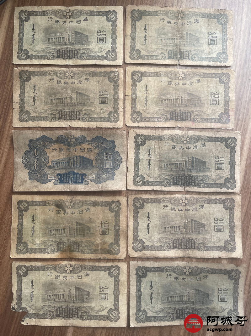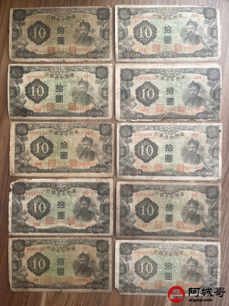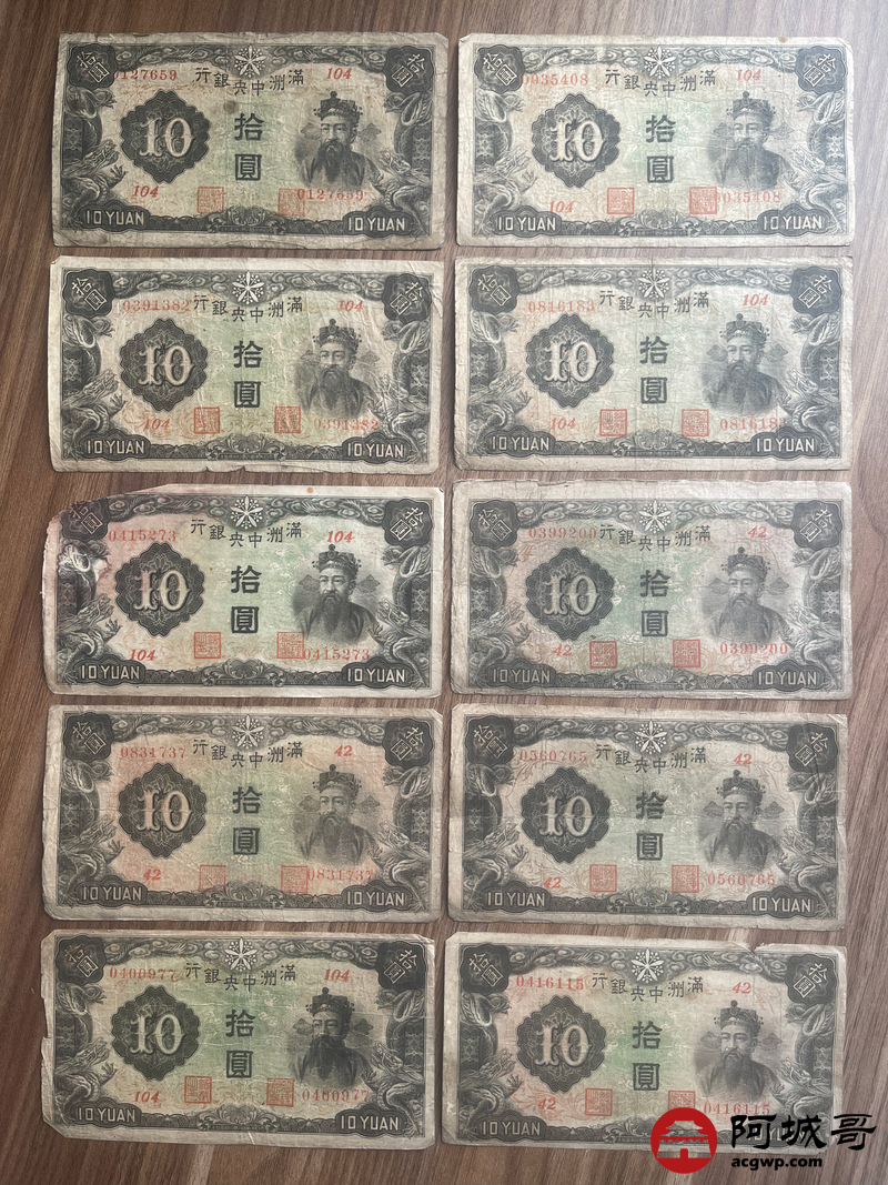 Lot:23 大同元年满洲中央银行 财神拾圆 100张 65至69成新 有几张修补