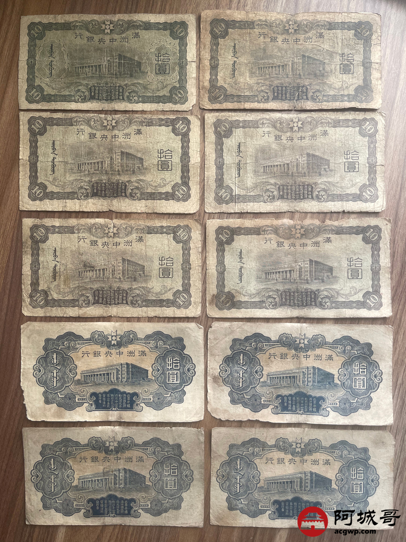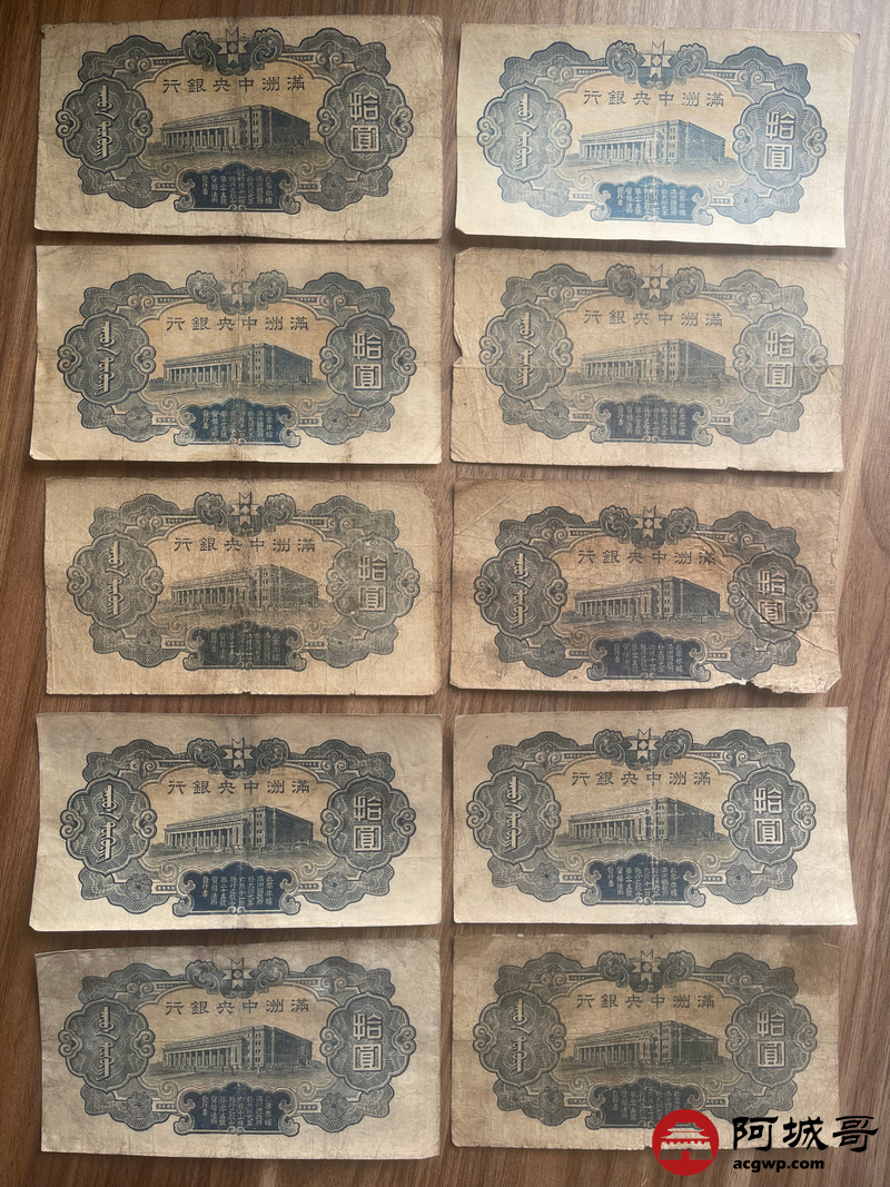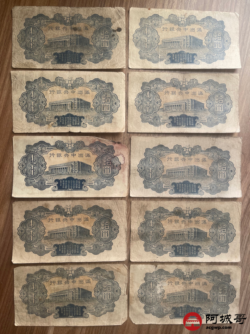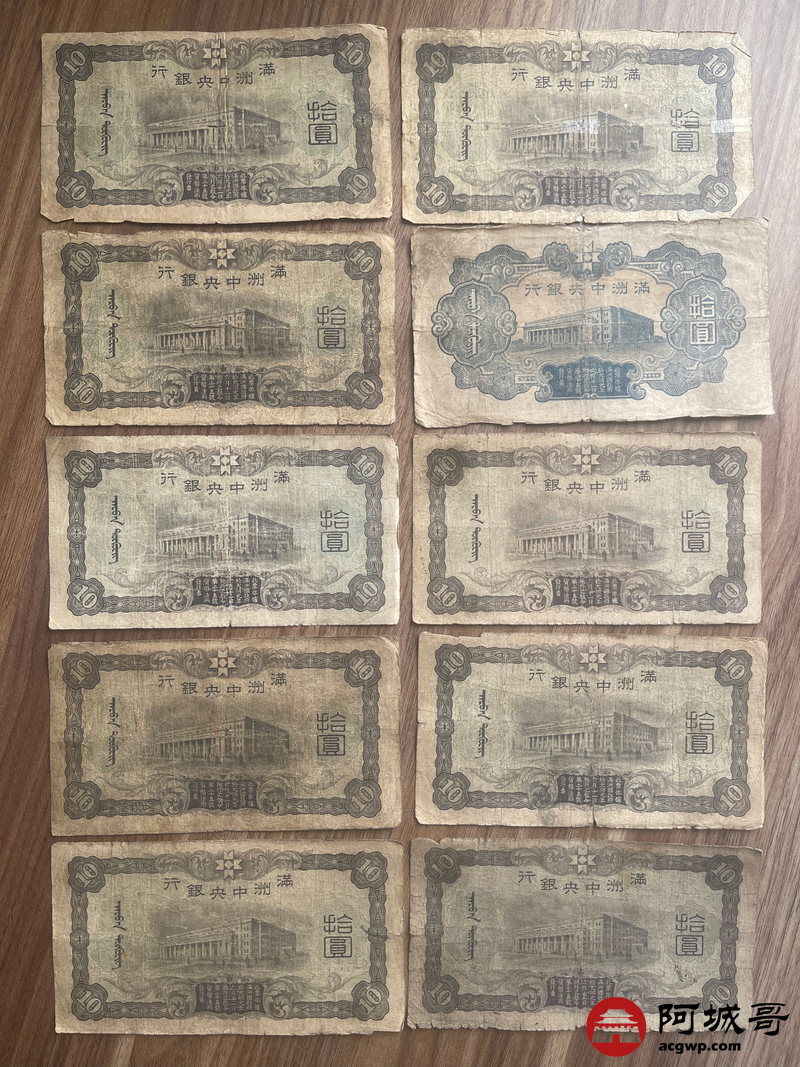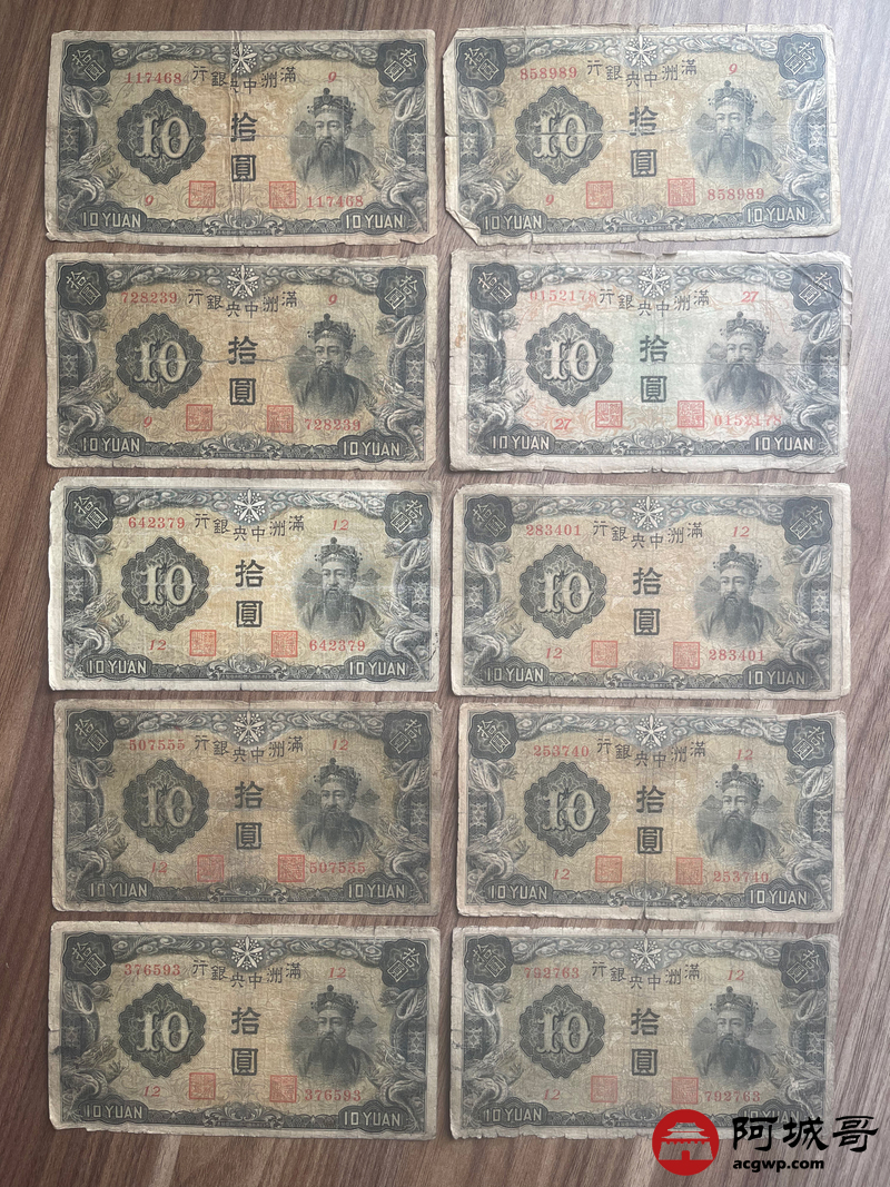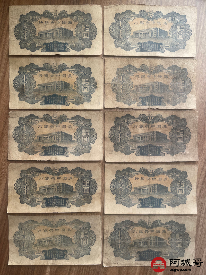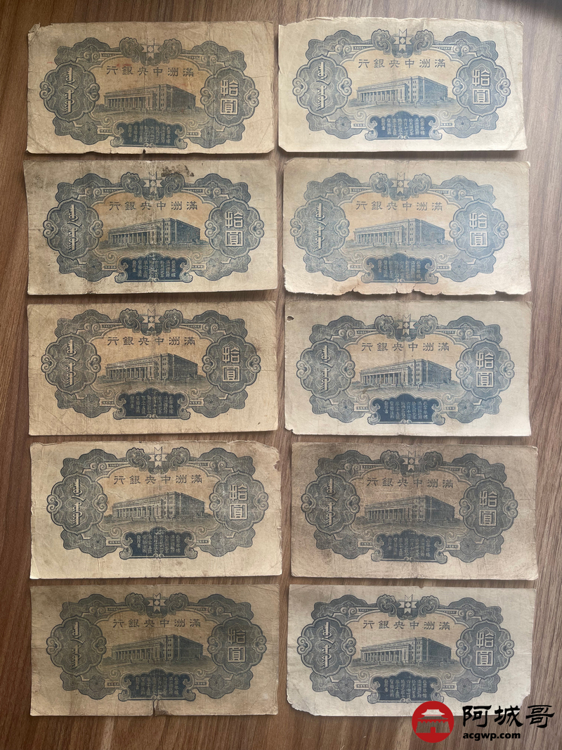 Lot:23 大同元年满洲中央银行 财神拾圆 100张 65至69成新 有几张修补