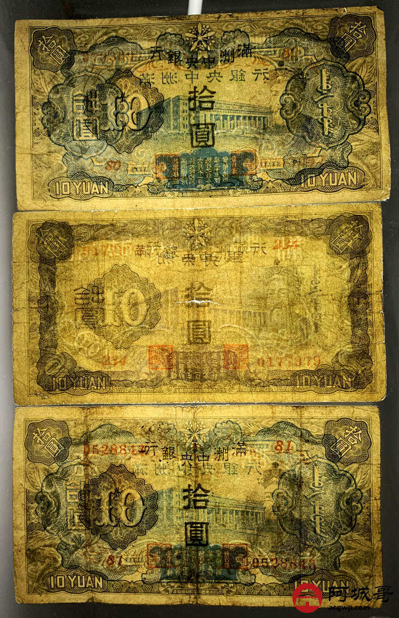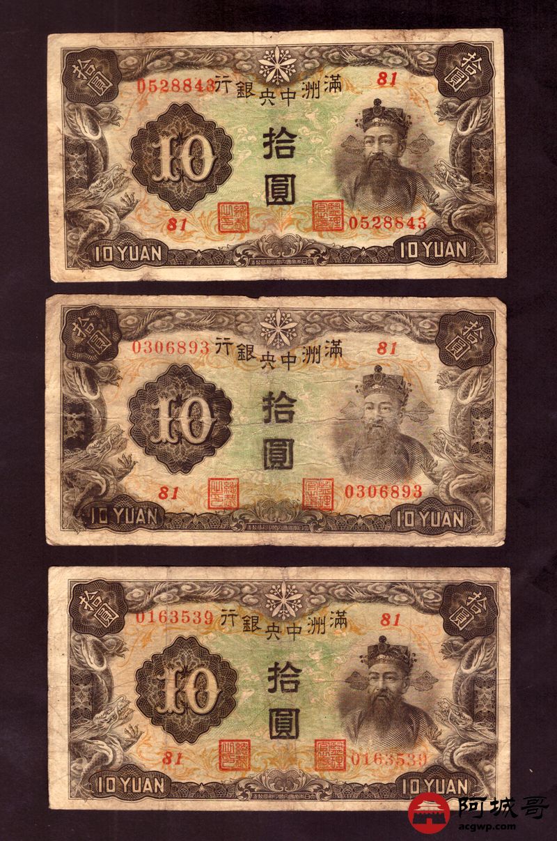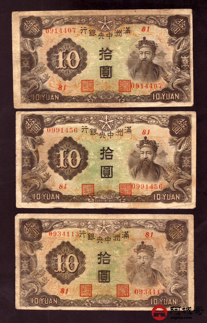 Lot:50 满洲中央银行 拾圆 10张 68至69成新