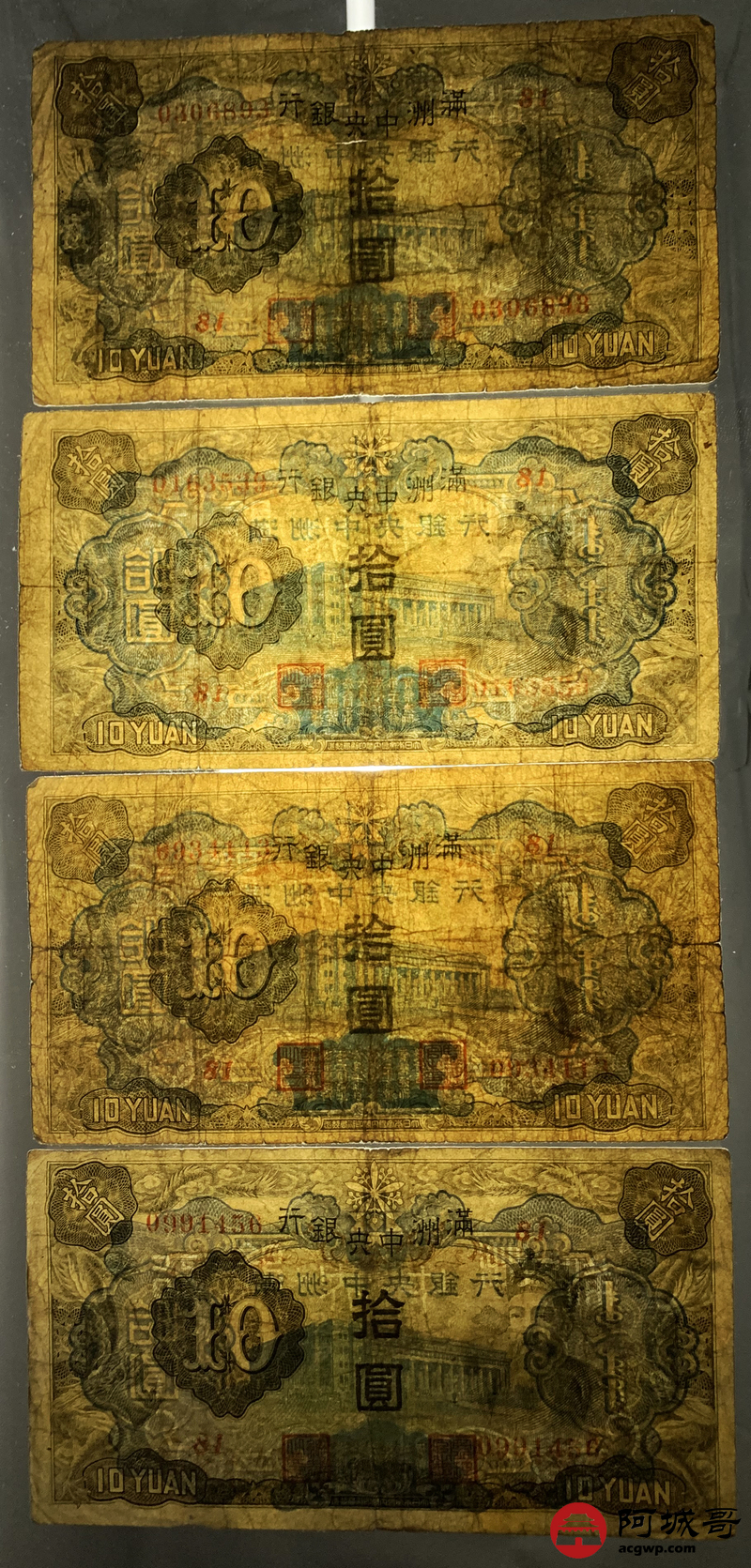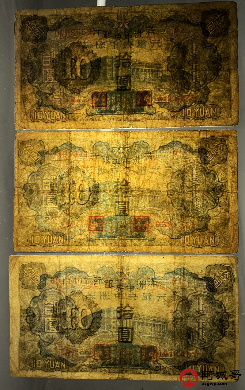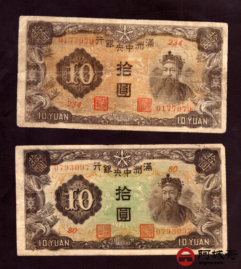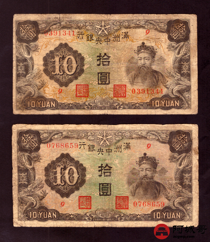 Lot:50 满洲中央银行 拾圆 10张 68至69成新