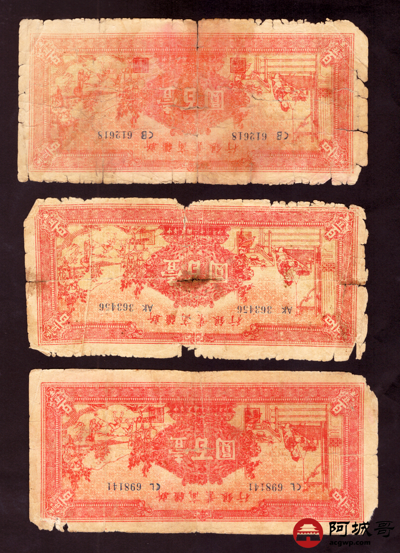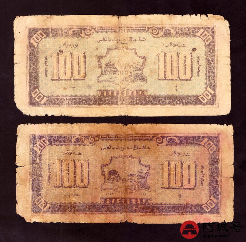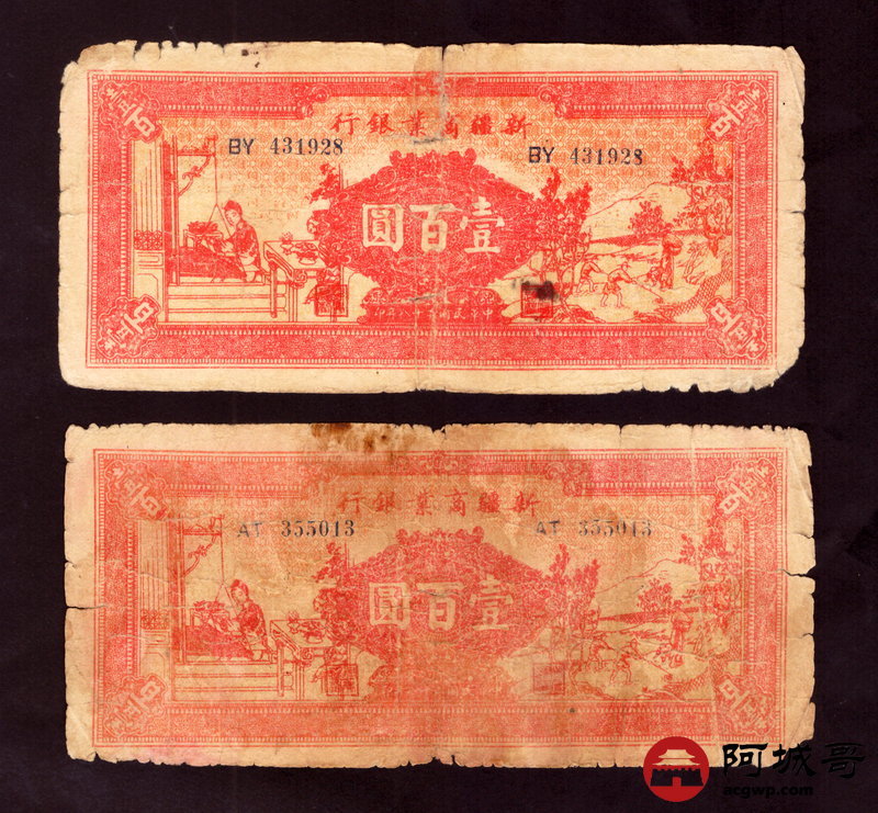 Lot:44 民国二十八年 新疆商业银行 壹佰圆 5张 65至67成新