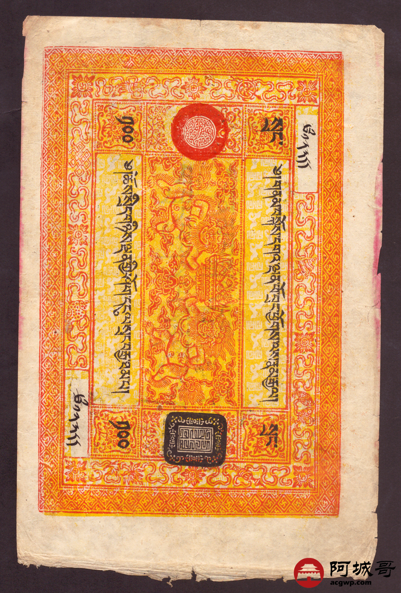 Lot:36 民国时期西藏老纸币 100两
