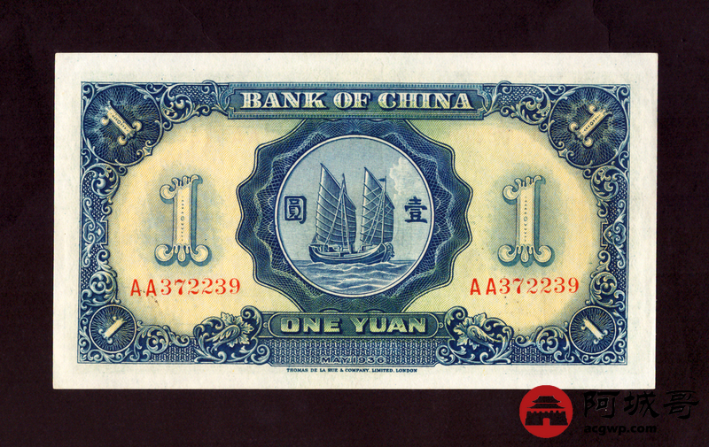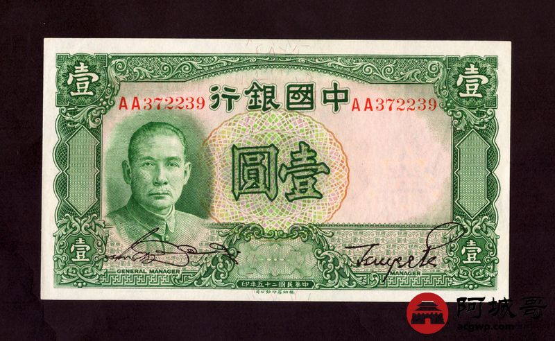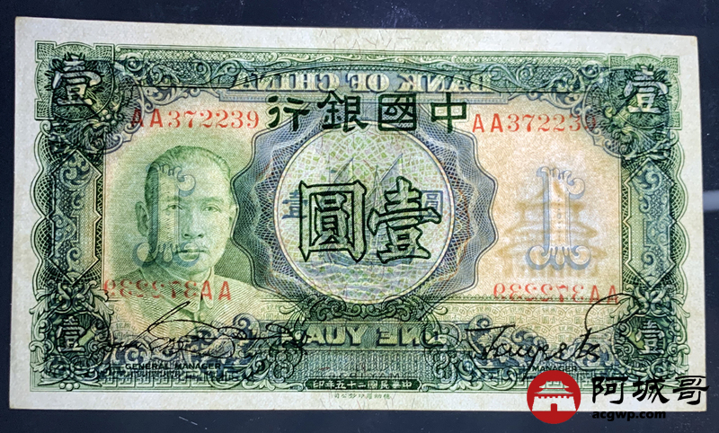 Lot:53 民国25年 中国银行 壹圆 原票93成新