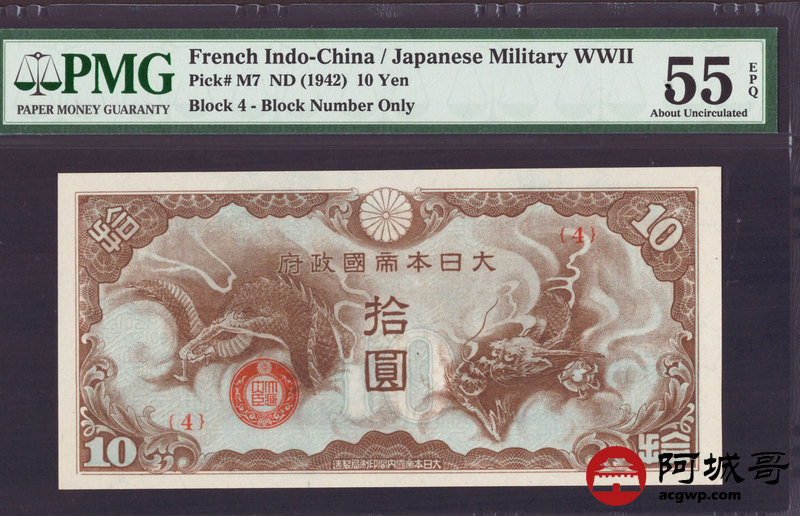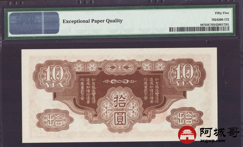 Lot:45 二战时期 日本拾圆 PMG 55EPQ