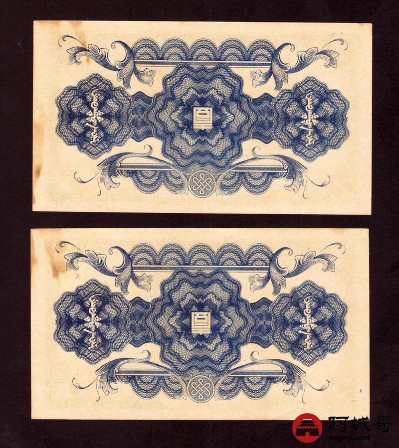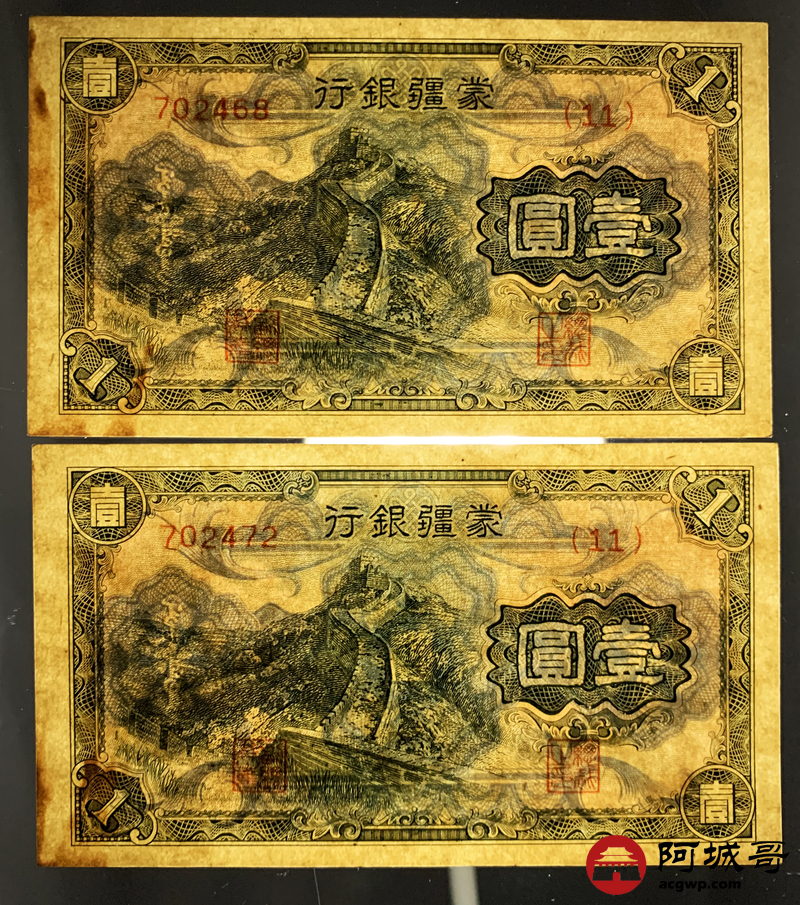 Lot:4 蒙疆银行 壹圆 两张 跳连两张9至92成新