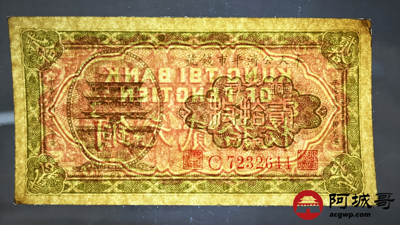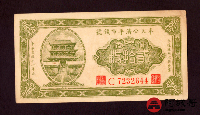 Lot:43 民国11年 奉天公济平市钱号 贰拾枚 85成新