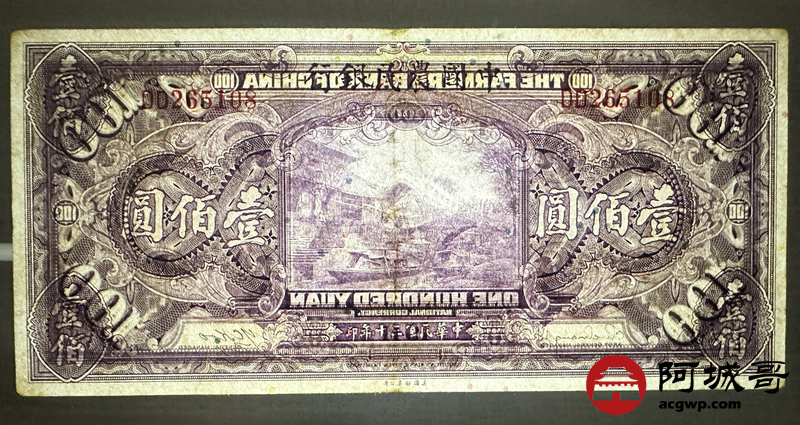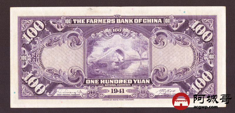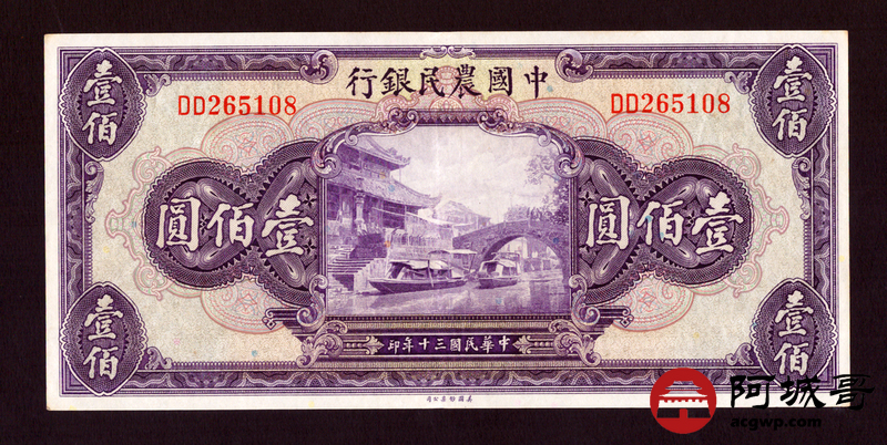 Lot:46 民国30年 中国农民银行 壹佰圆 双字轨 78至8成新