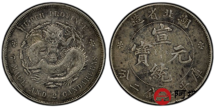 Lot:20 原味老包浆 湖北宣统七钱二分 PCGS XF