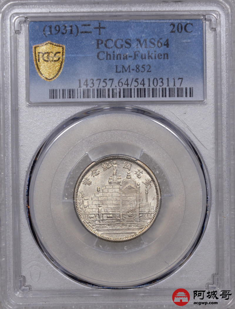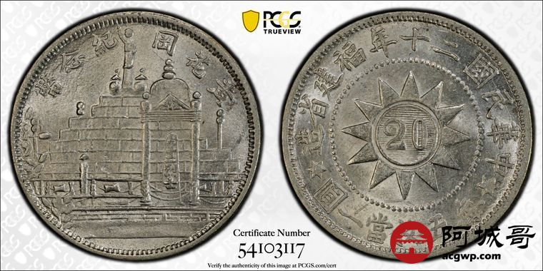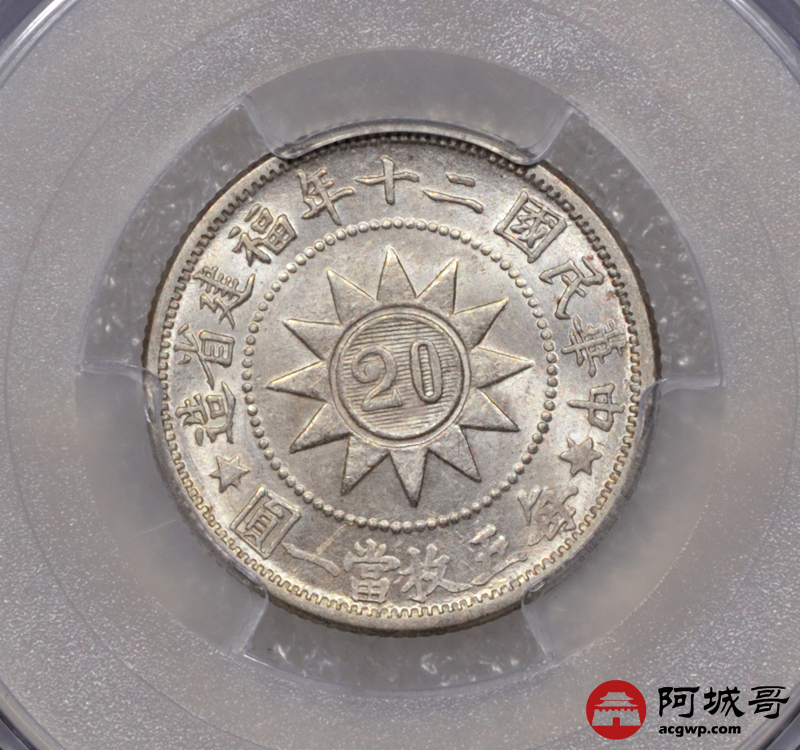 Lot:8 黄油原光 民国二十年福建黄花岗贰角 PCGS MS64