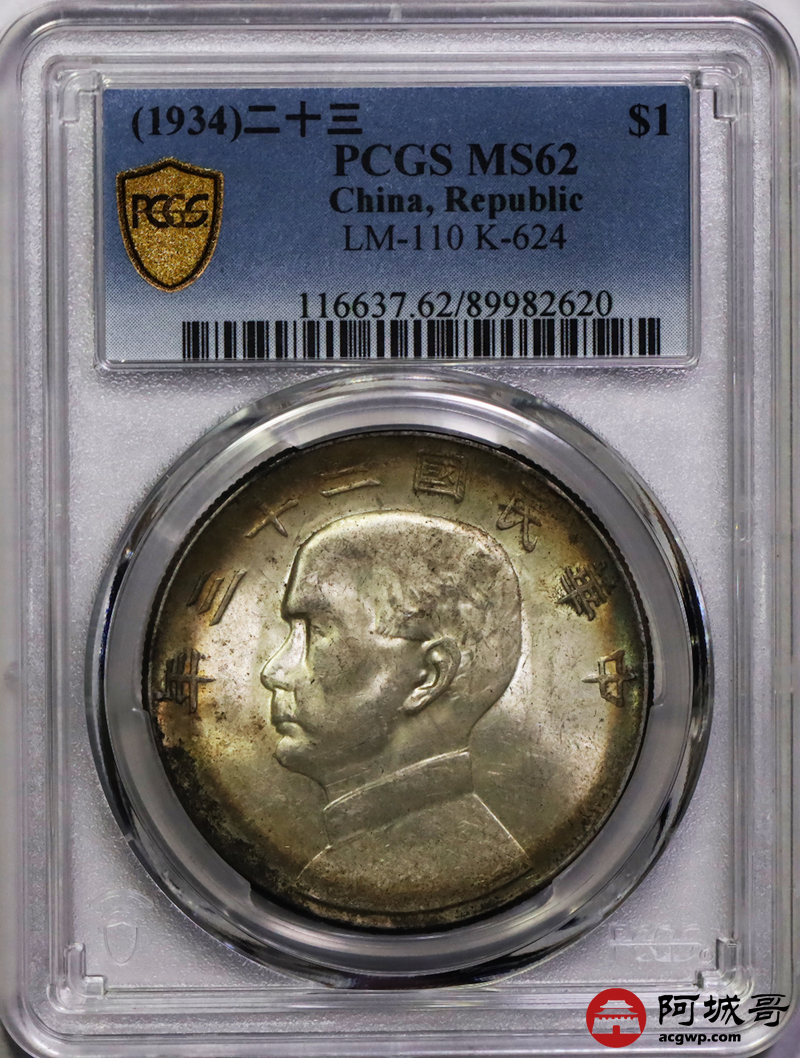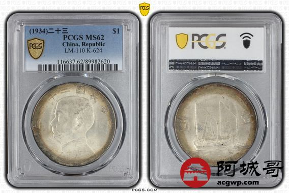 Lot:14 环彩 黄油原光 二十三年船洋 PCGS MS62