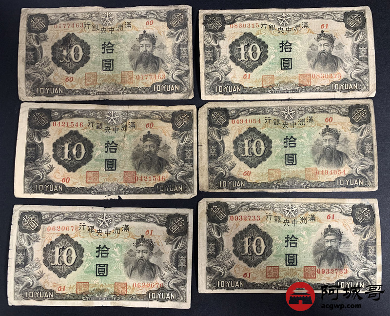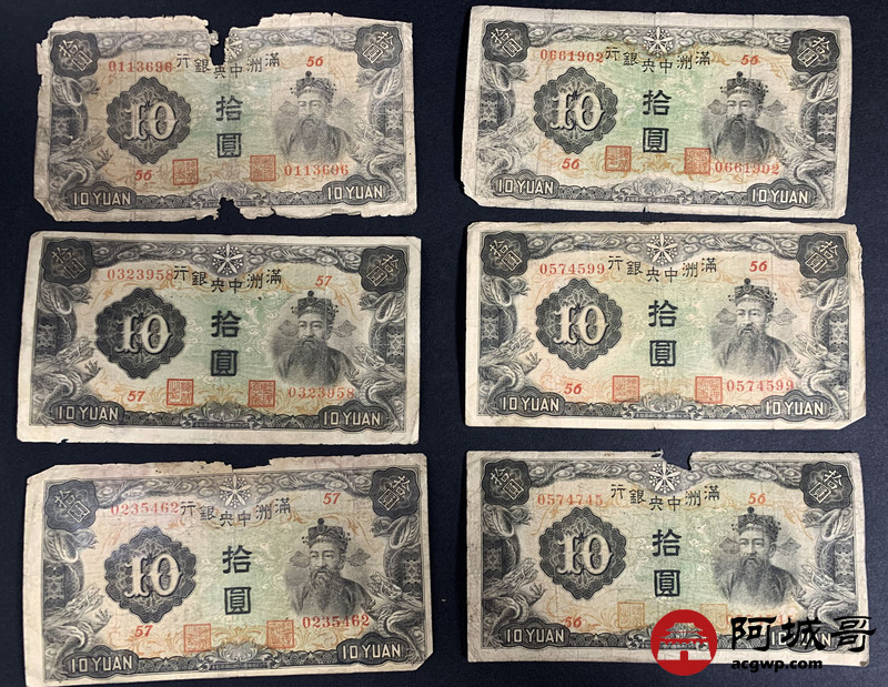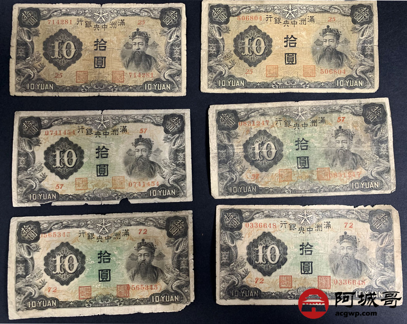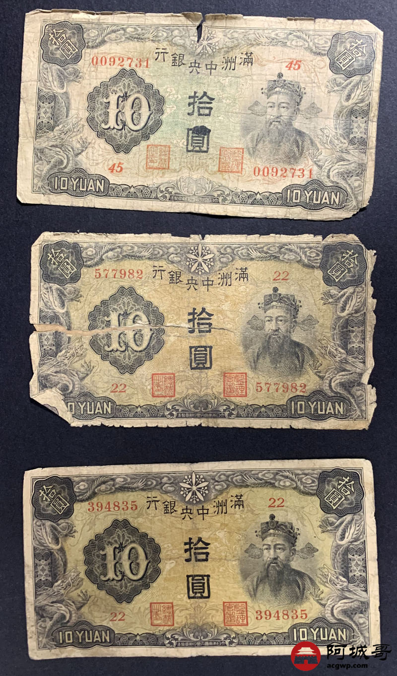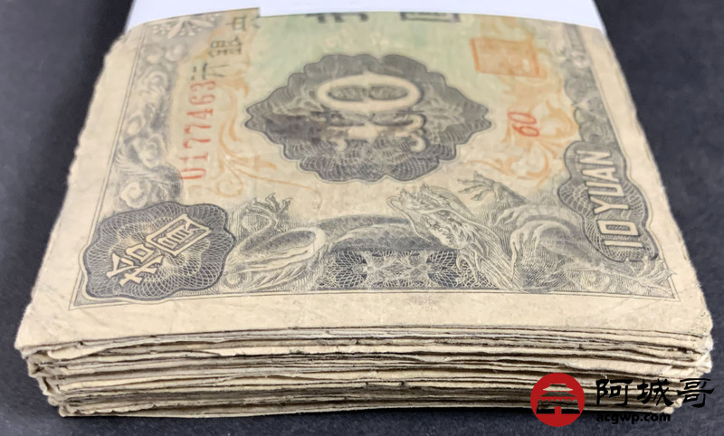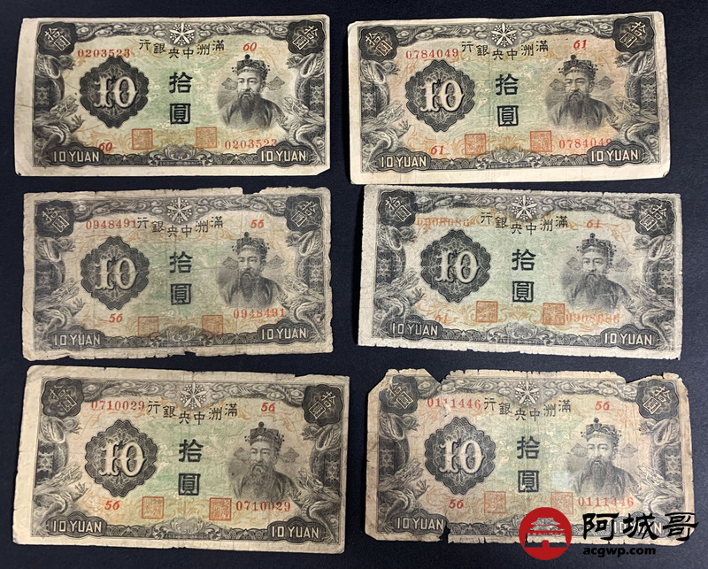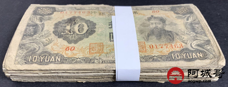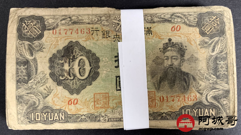 Lot:39 满洲中央银行 财神拾圆 100张 55至69成新 有三张修补