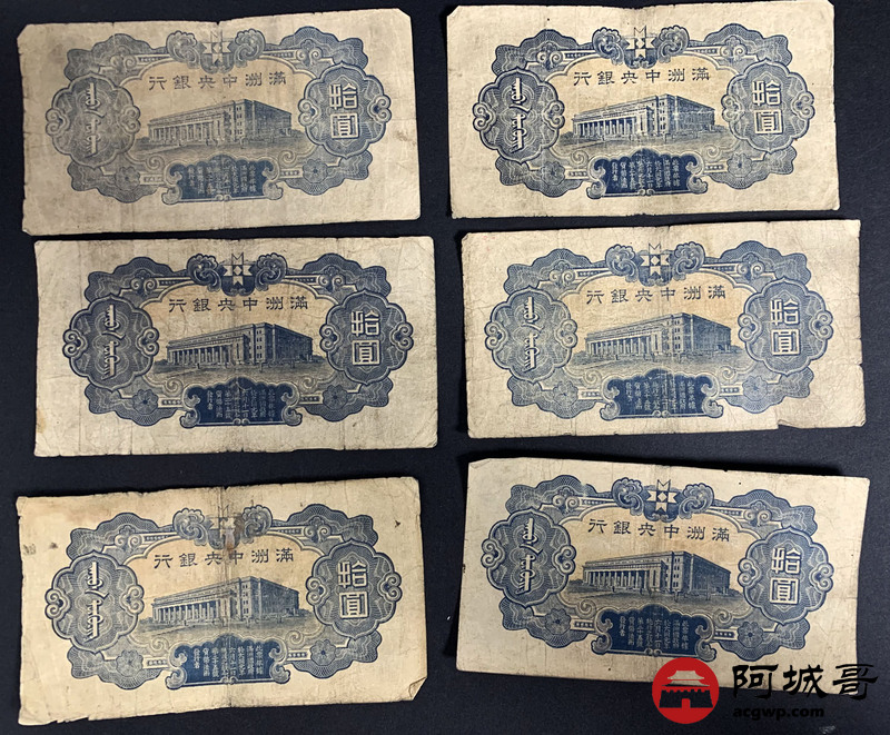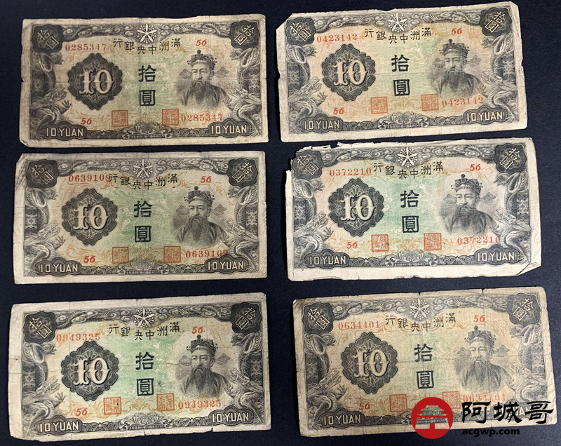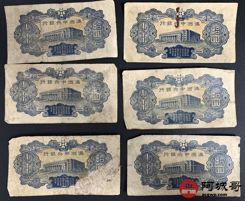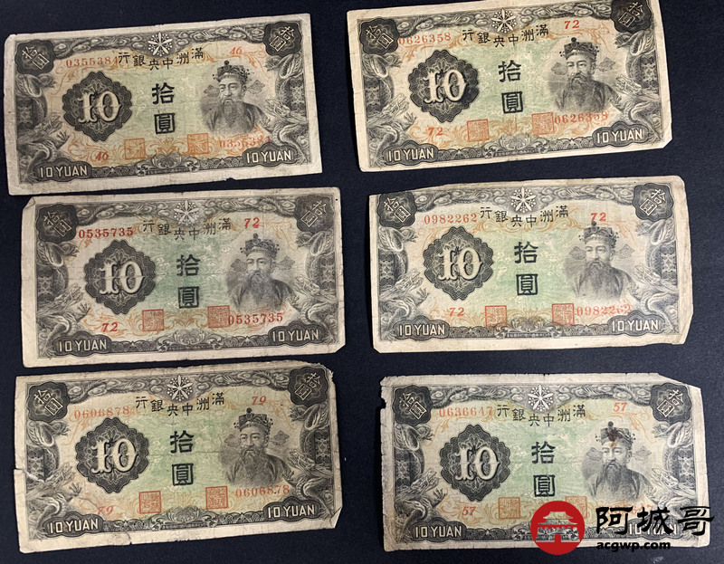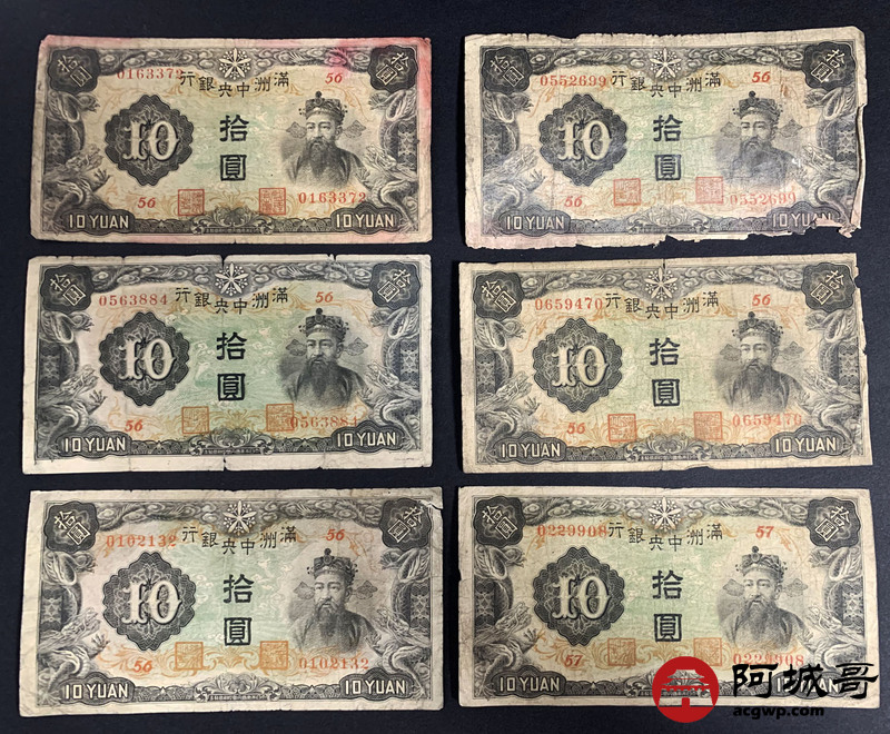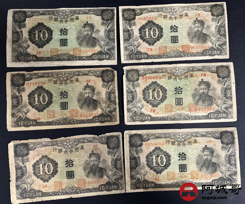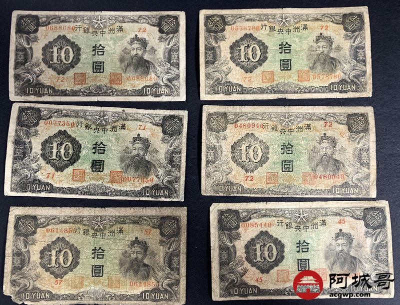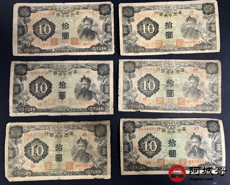 Lot:39 满洲中央银行 财神拾圆 100张 55至69成新 有三张修补