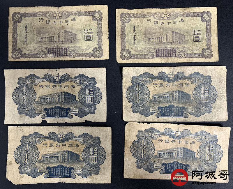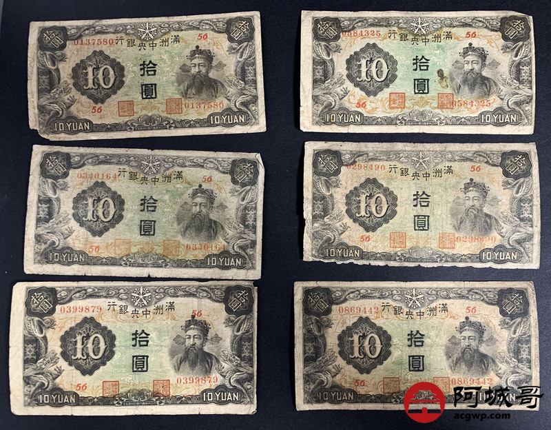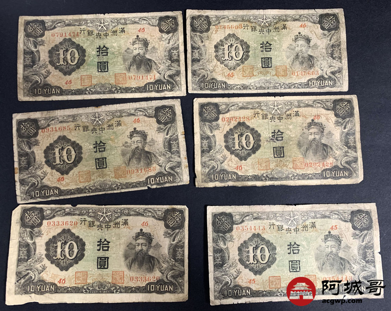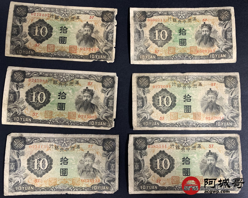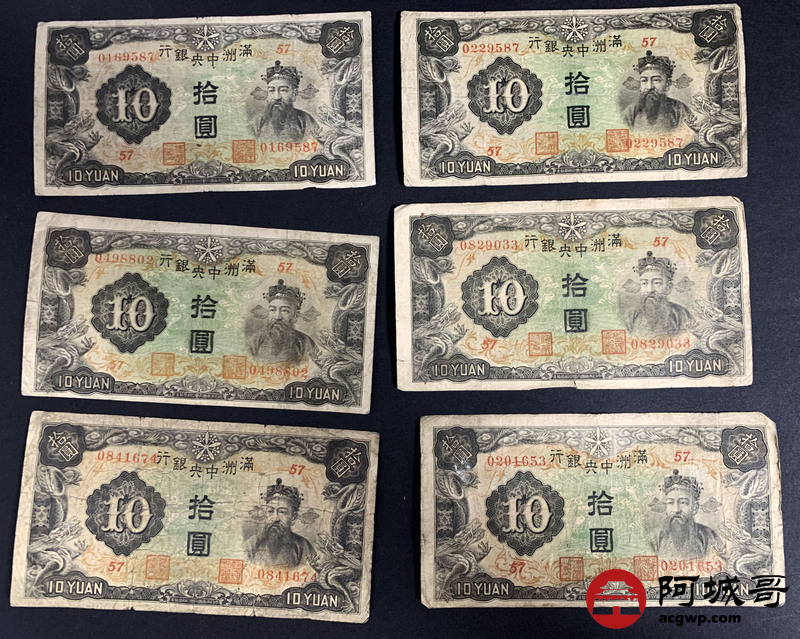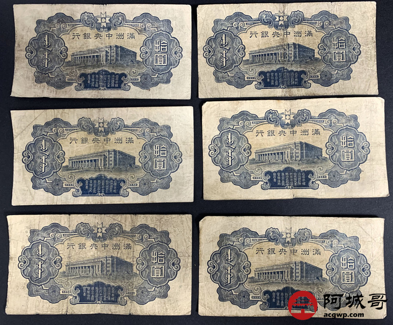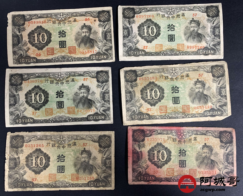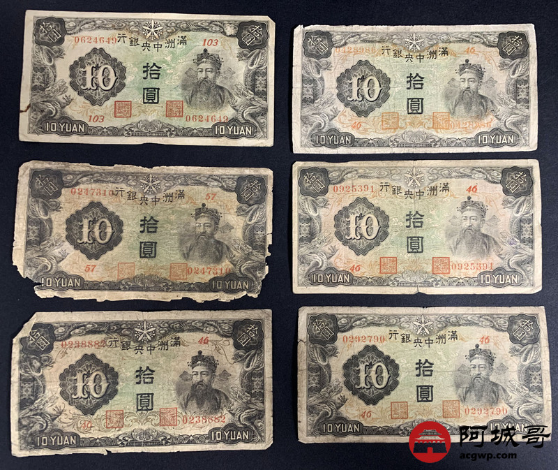 Lot:39 满洲中央银行 财神拾圆 100张 55至69成新 有三张修补