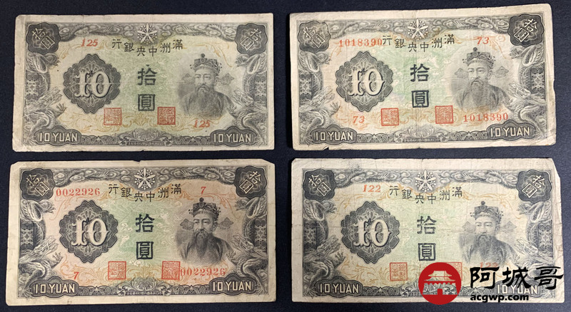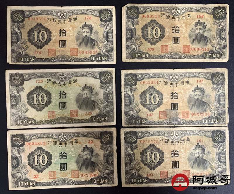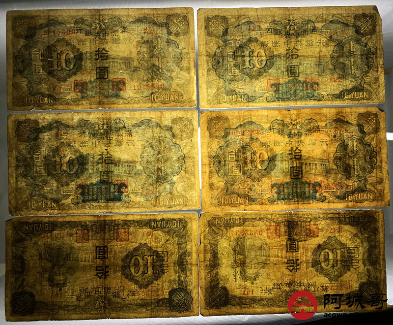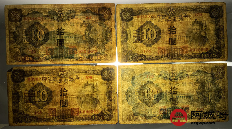Lot:49 满洲中央银行 拾圆 10张 69至7成新