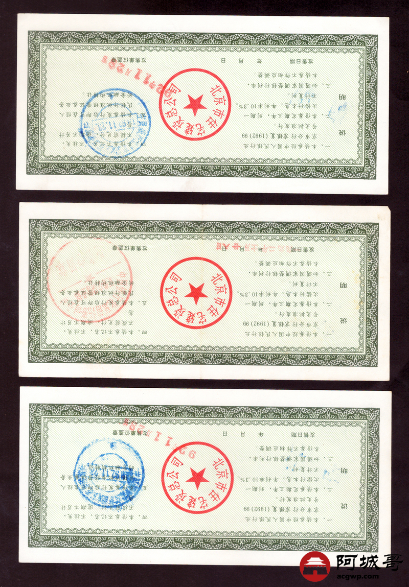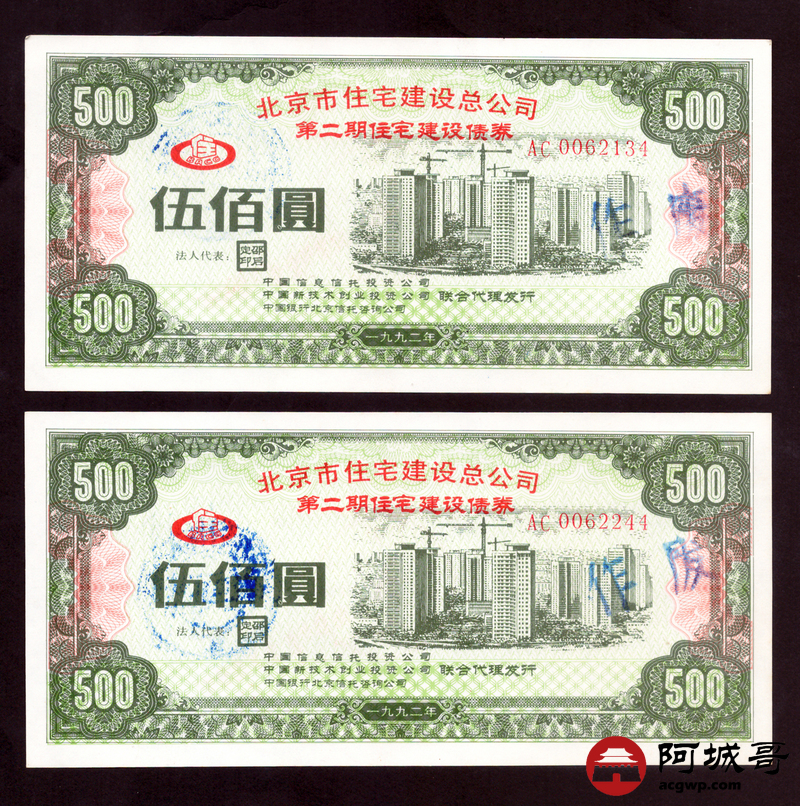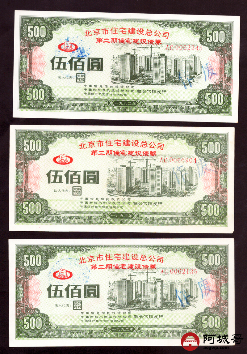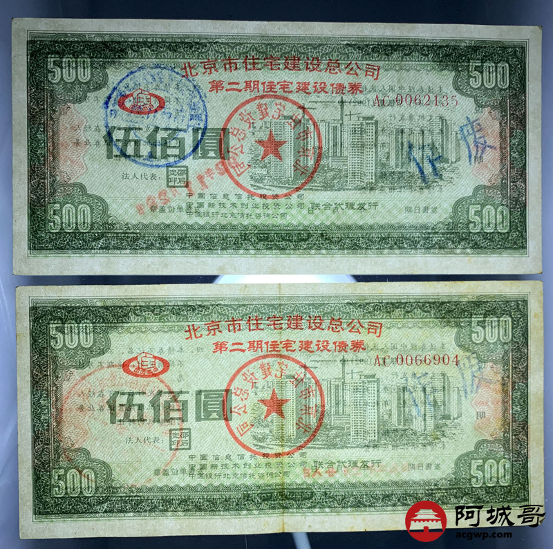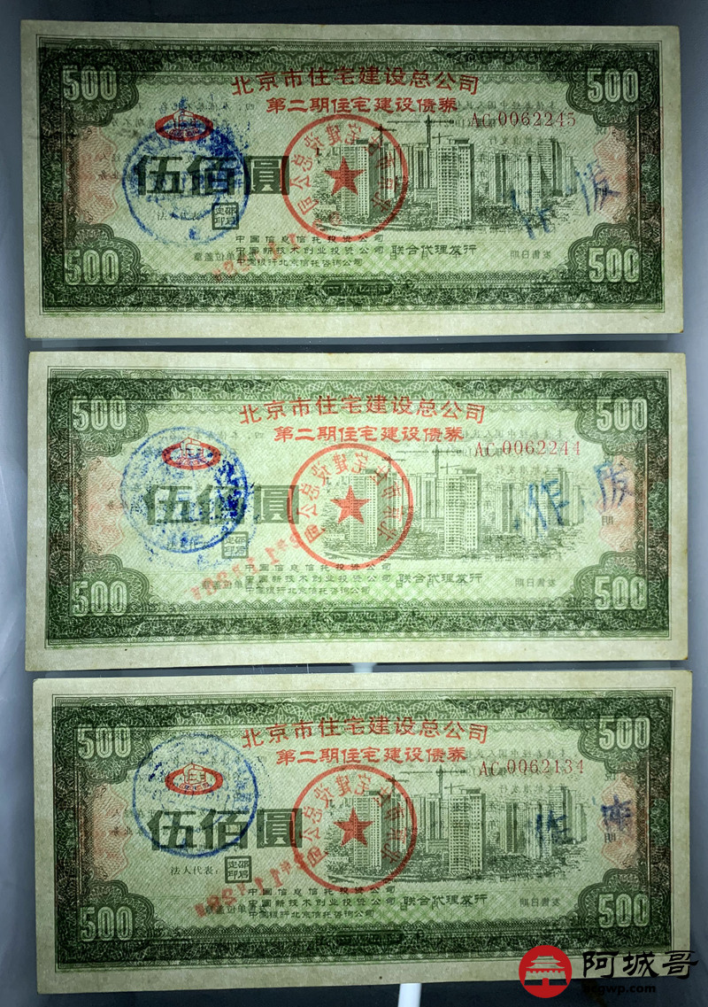 Lot:62 1952年 北京市住宅建设总公司 伍佰圆 5张 85至92成新