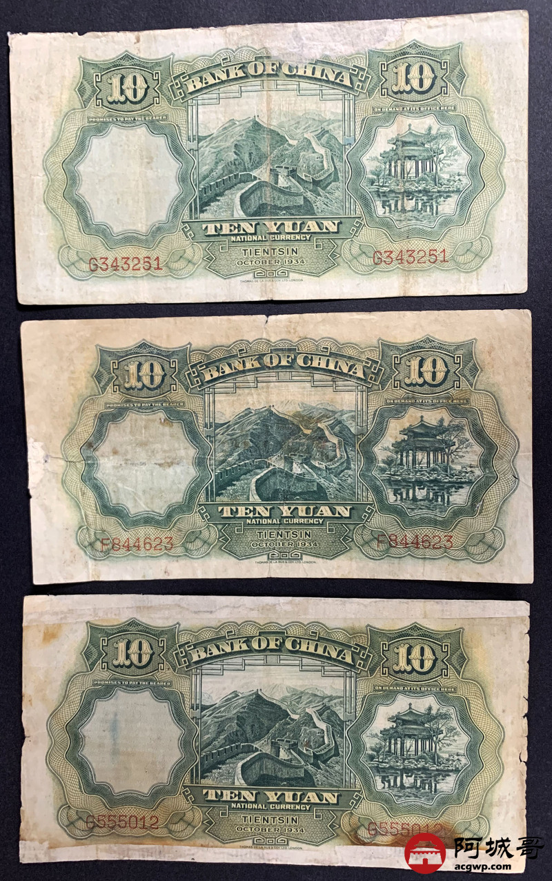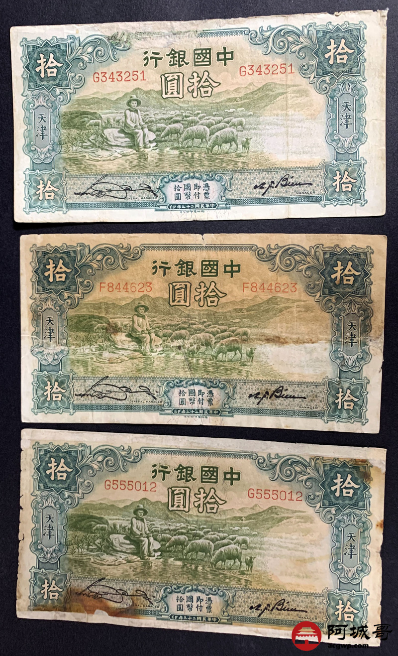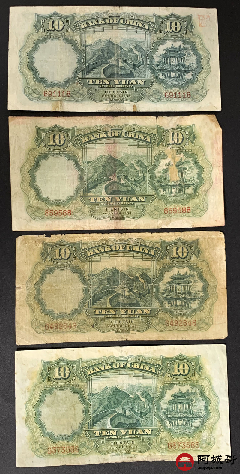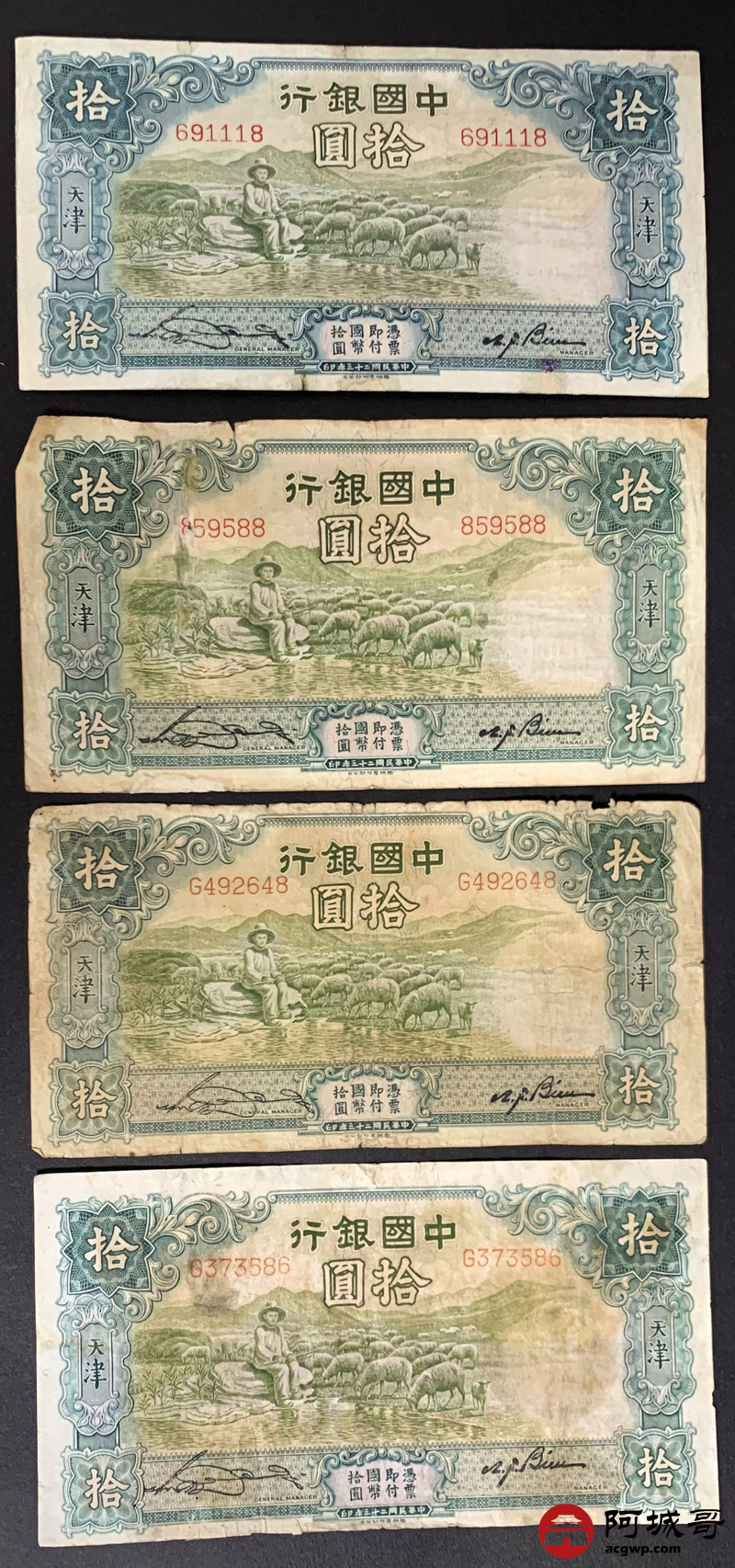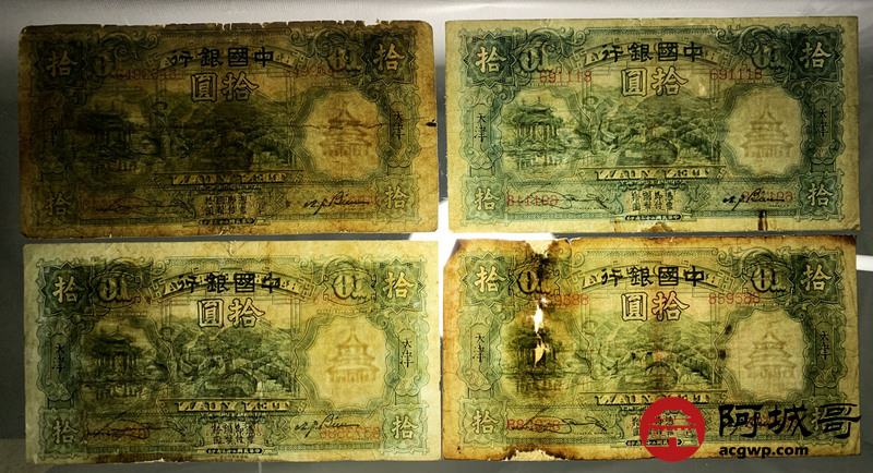 Lot:47 民国23年 中国银行拾元 7张 修补55成新