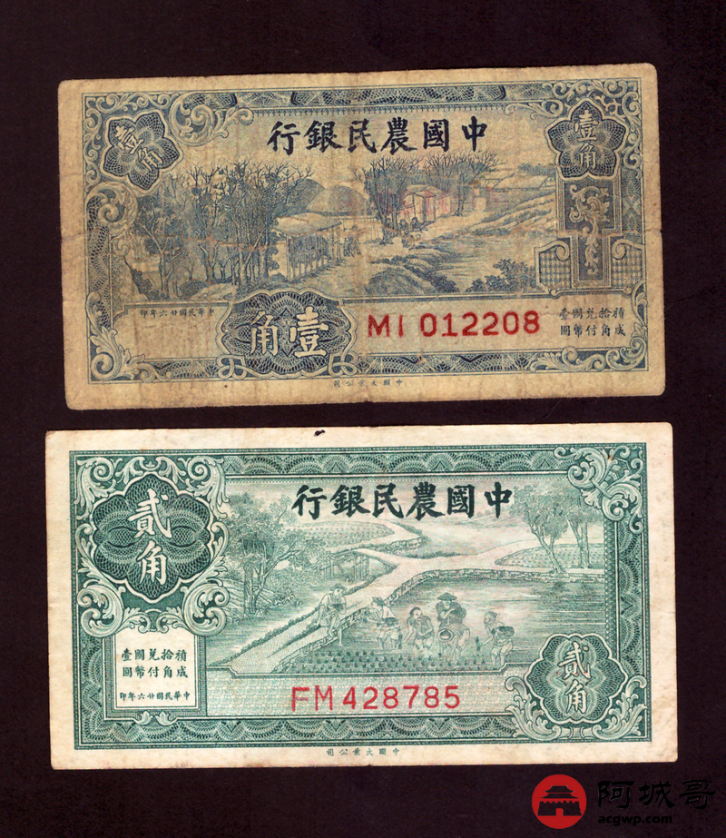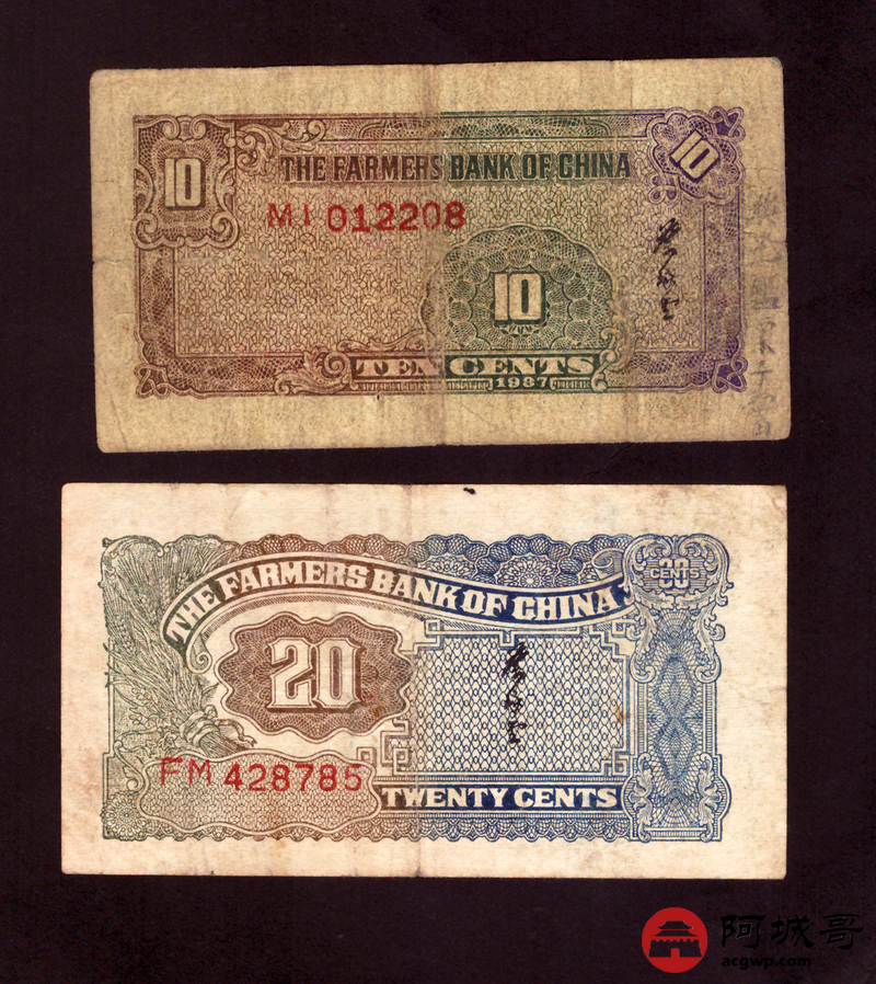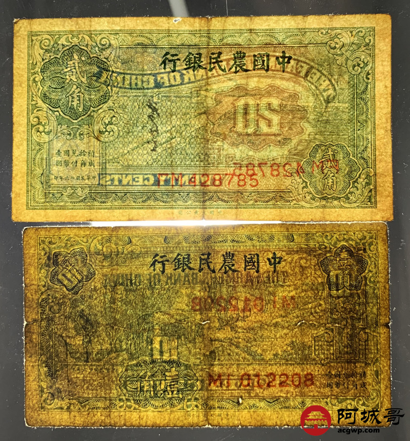 Lot:34 民国二十六年 中国农民银行 壹角、贰角 68至69成新