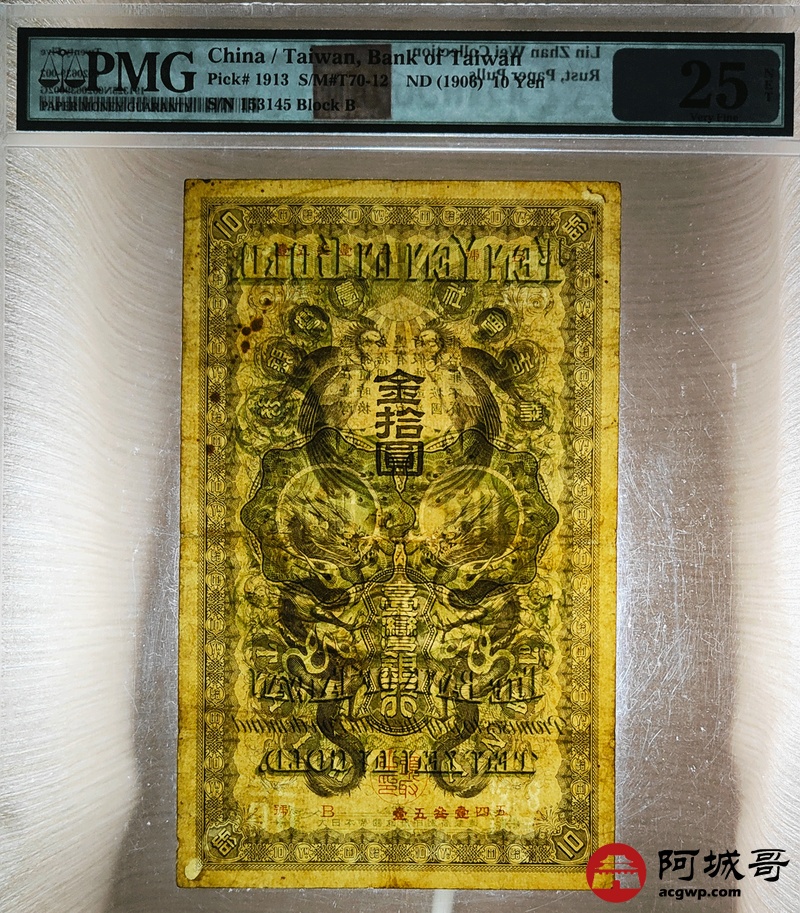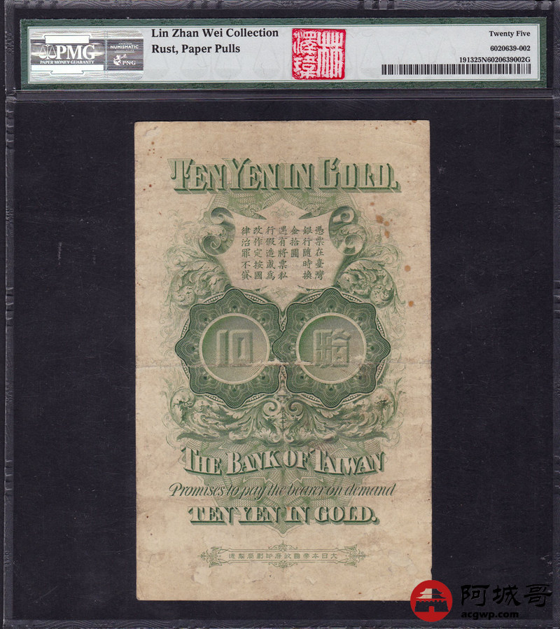 Lot:41 台湾银行 金拾圆 名誉品种 稀少 好品更少见 PMG 25