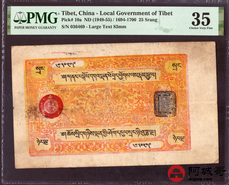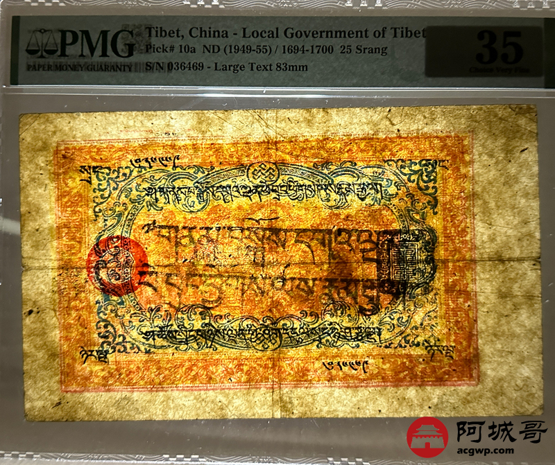 Lot:26 民国时期 西藏老纸币 25两 PMG 35 好品少见