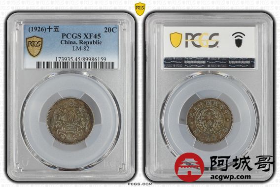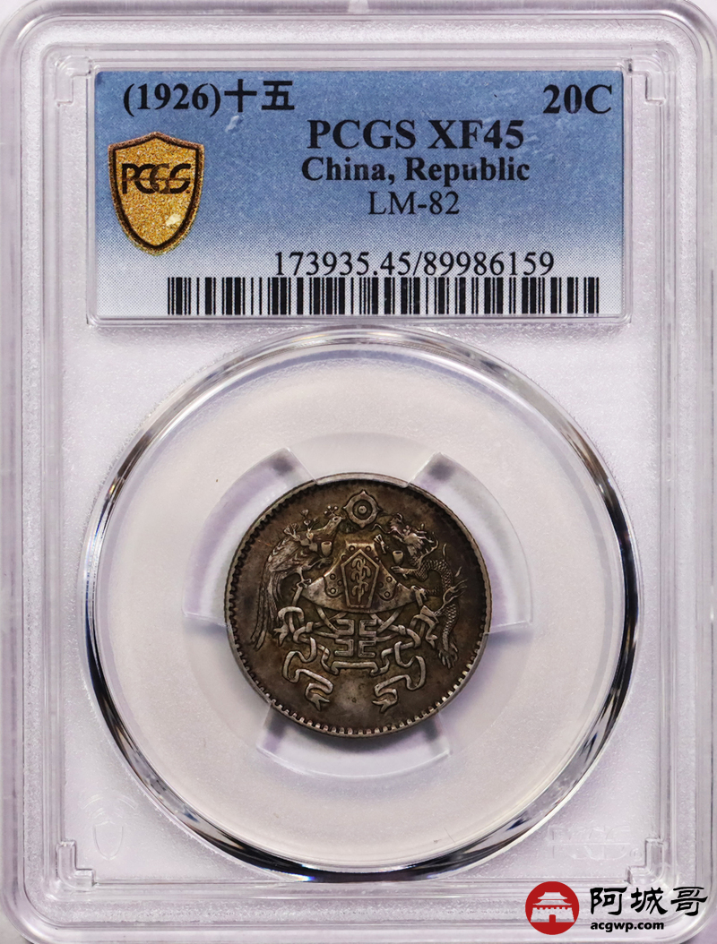 Lot:19 深打老包浆 民国十五年龙凤贰角 PCGS XF45