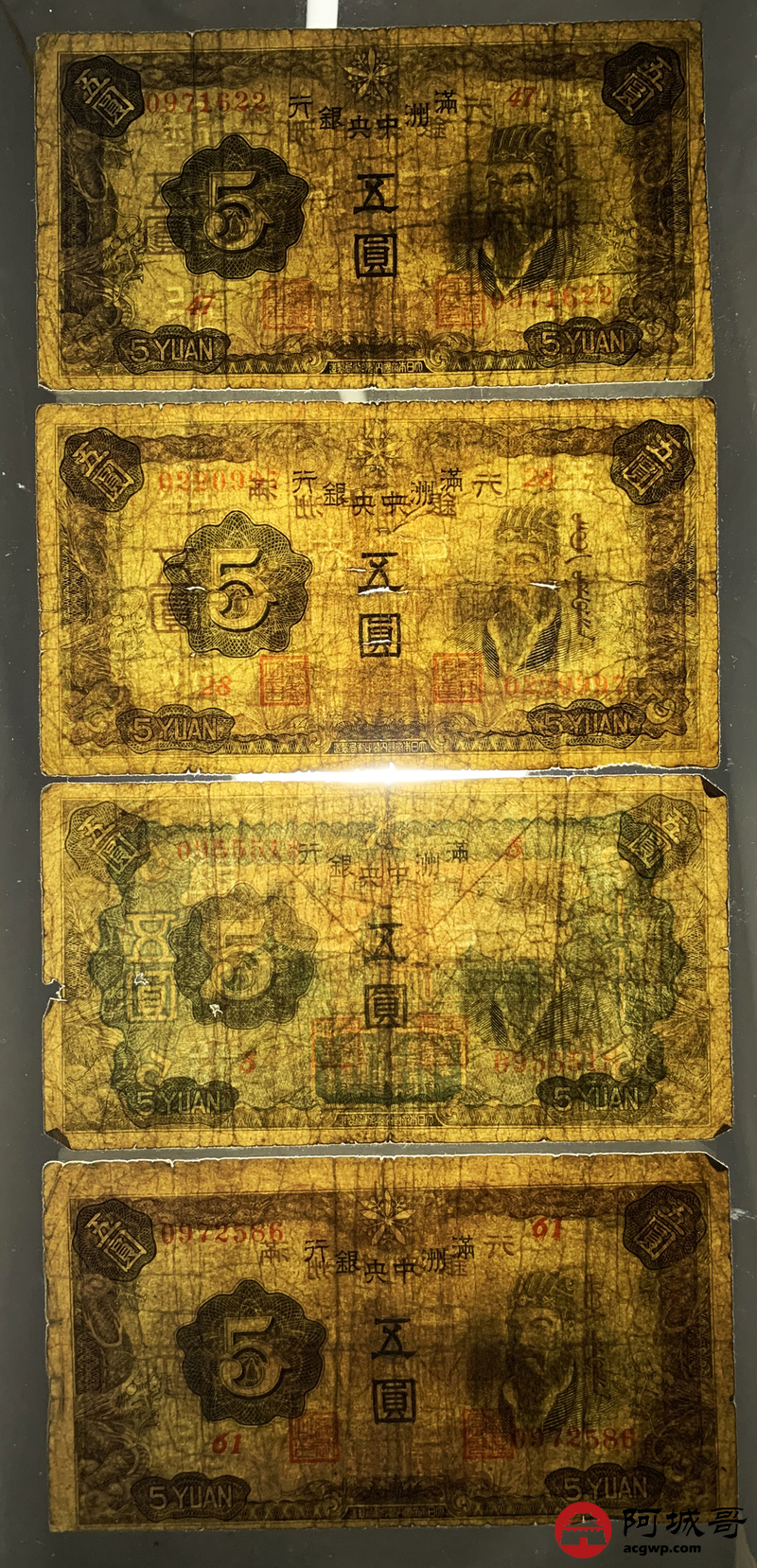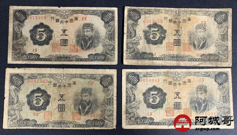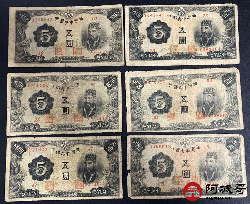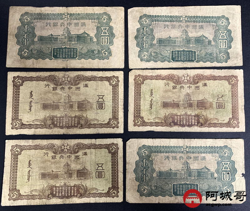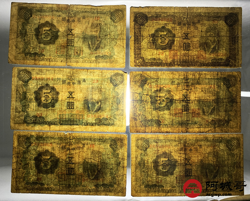 Lot:12 满洲中央银行 伍圆 10张 68至69成新