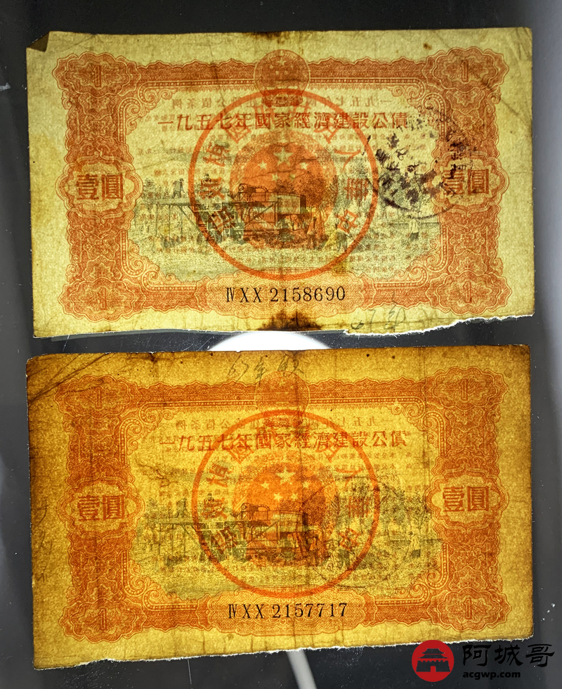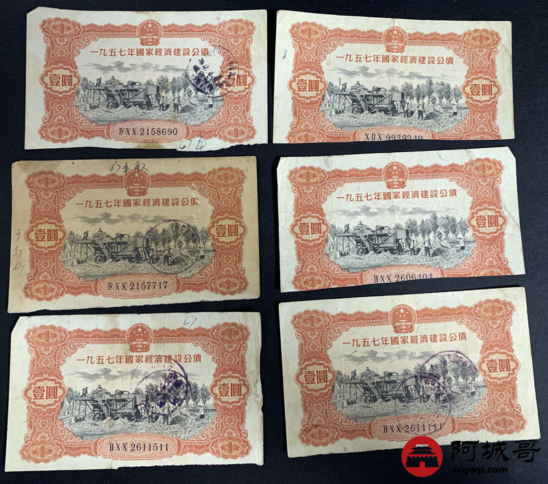 Lot:58 1957年 国家经济建设公债 壹圆 10张