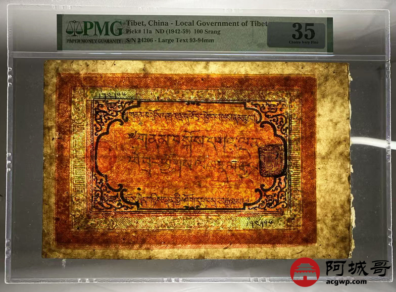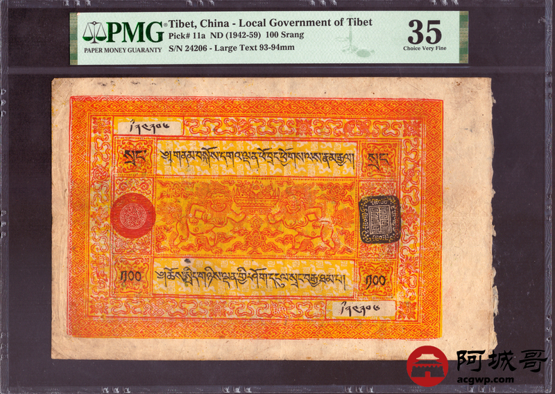 Lot:9 西藏老纸币 100两 PMG 35 原汁原味