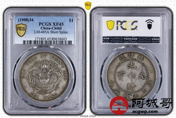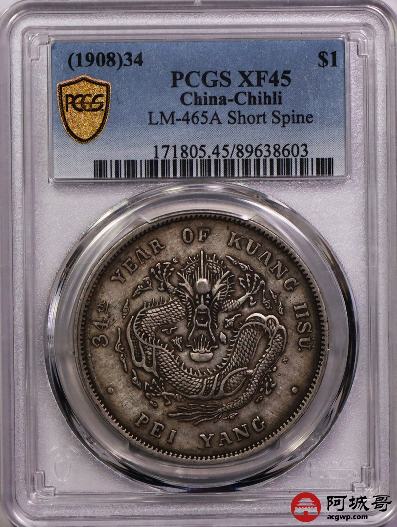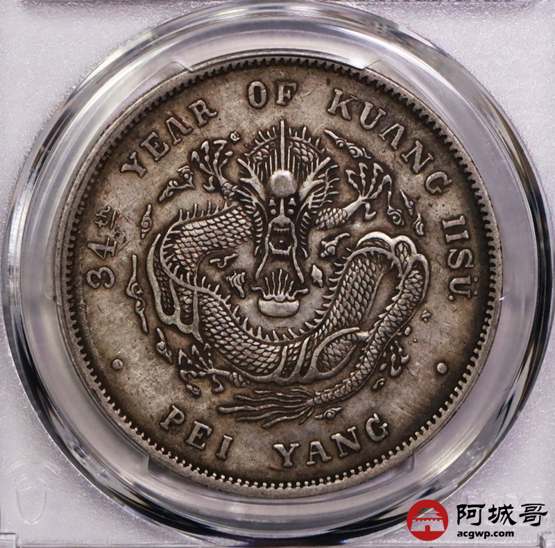 Lot:14 原味深打 老包浆 北洋34七钱二分 短尾龙 PCGS XF45