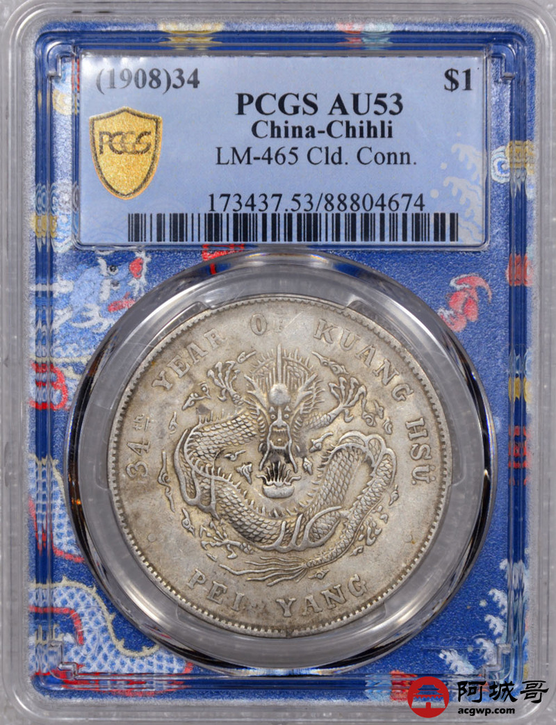 Lot:28 黄油原味 北洋34七钱二分 PCGS AU53
