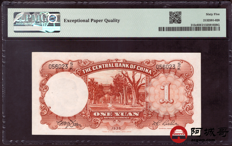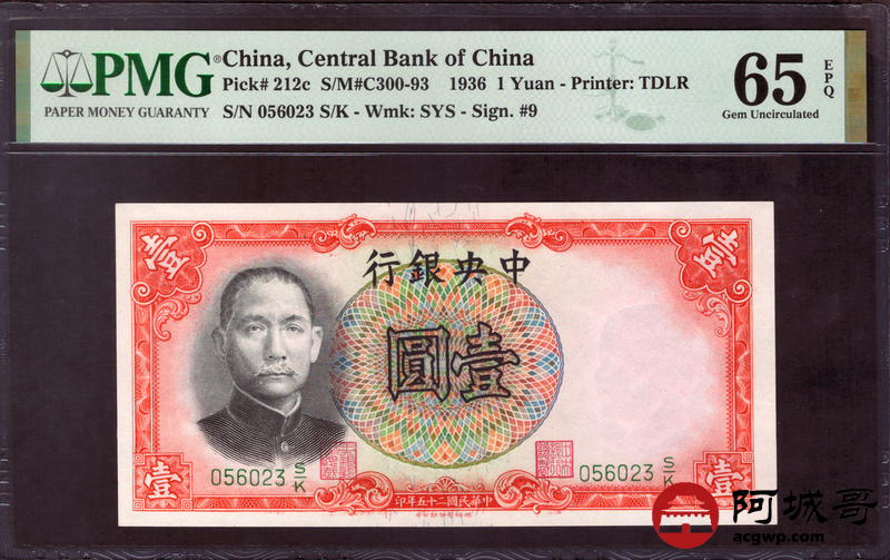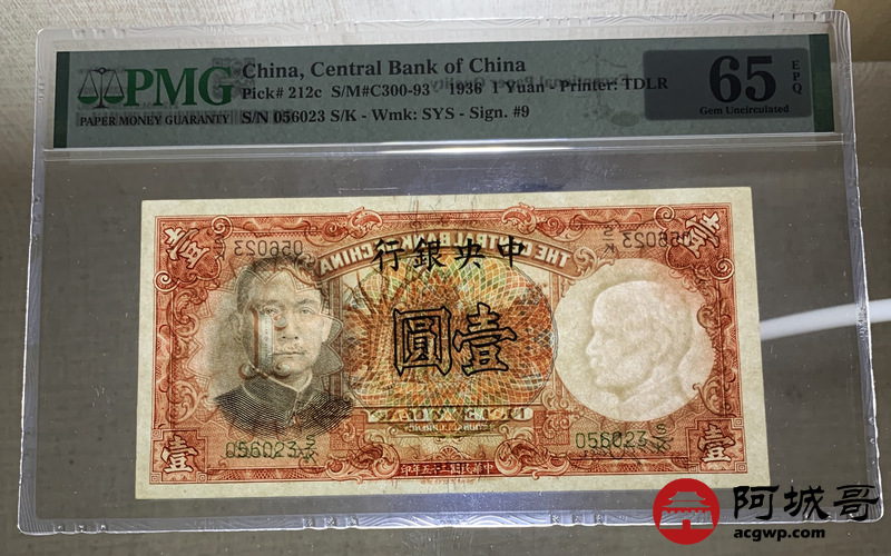 Lot:14 民国25年 中央银行 壹圆 PMG 65EPQ 此签名少见