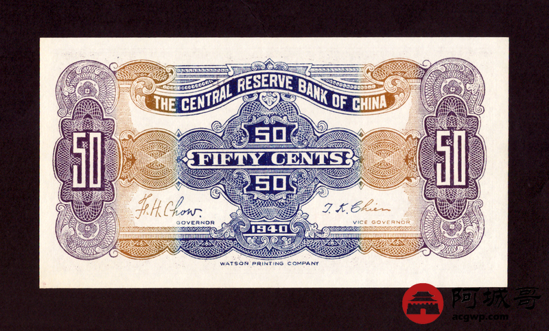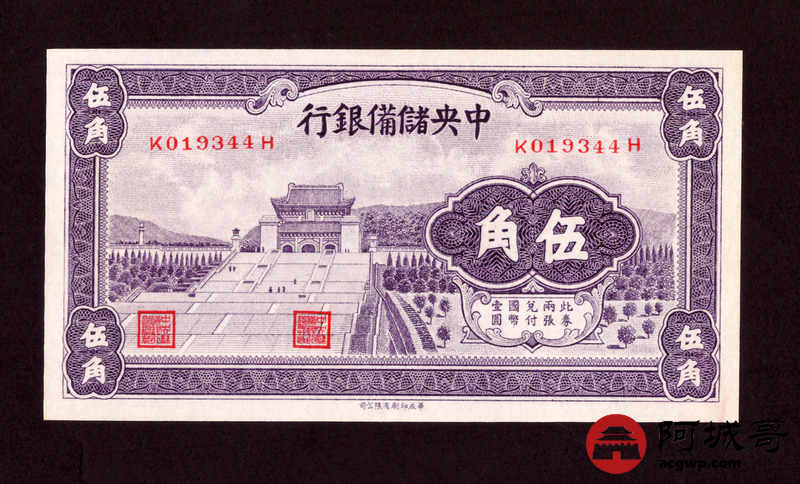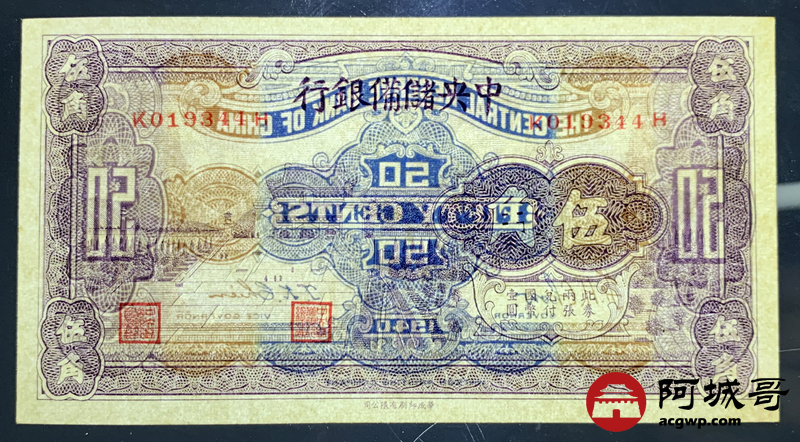 Lot:29 中央储备银行 伍角 原票95成新