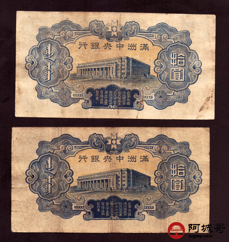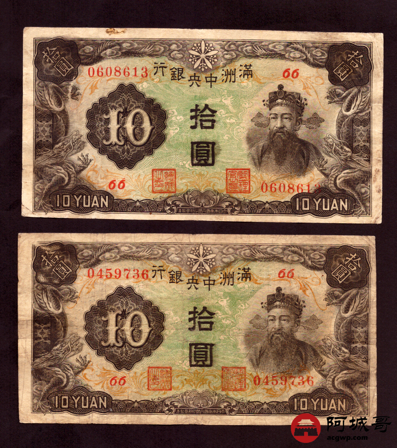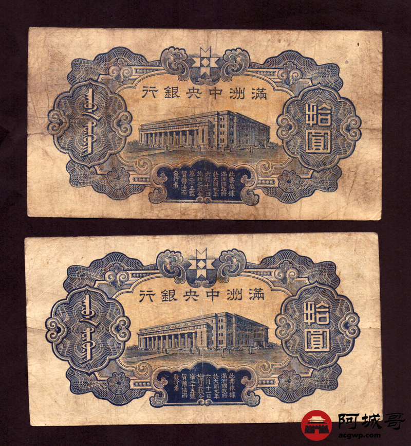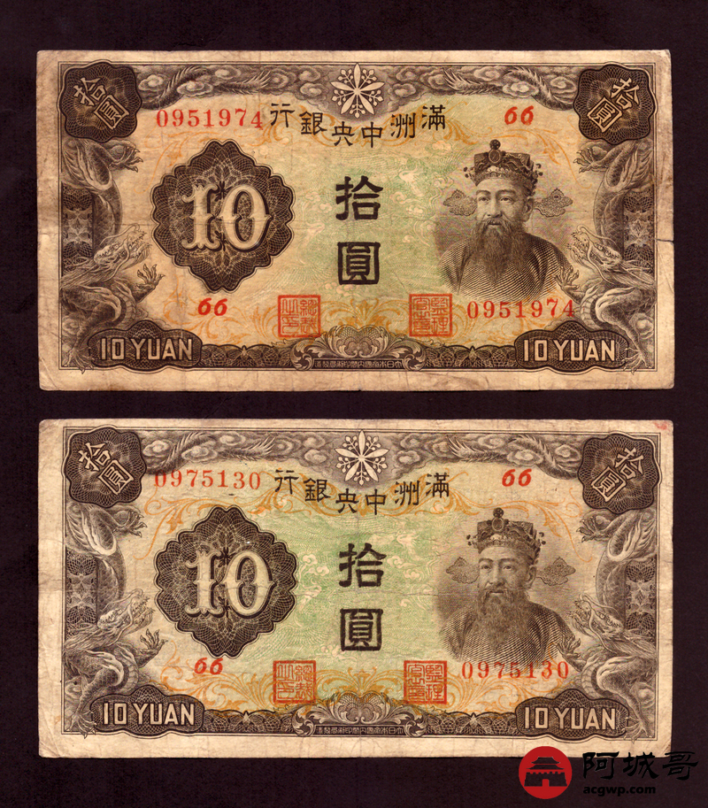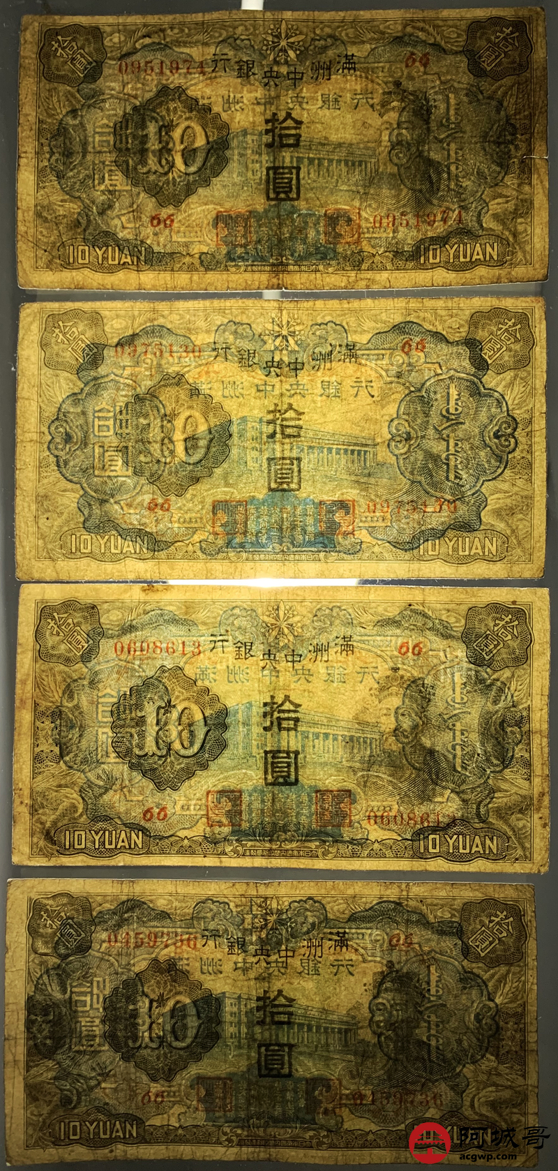 Lot:44 满洲中央银行 拾圆 4张 69至72成新